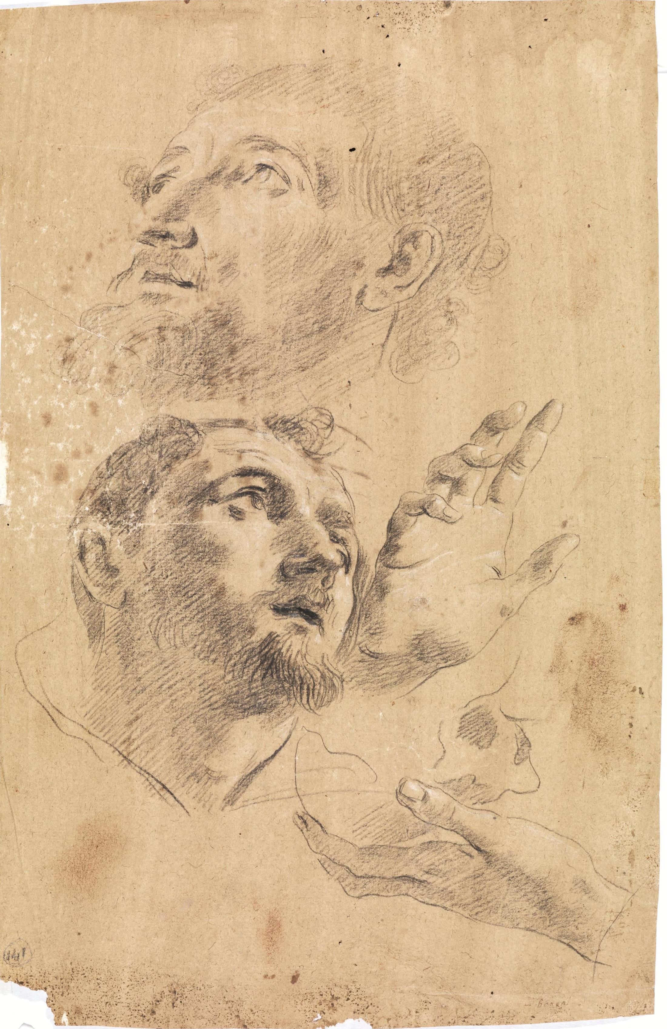 Scuola genovese del XVII sec.STUDI DI TESTE E MANI DI FRATE FRANCESCANOMatita...