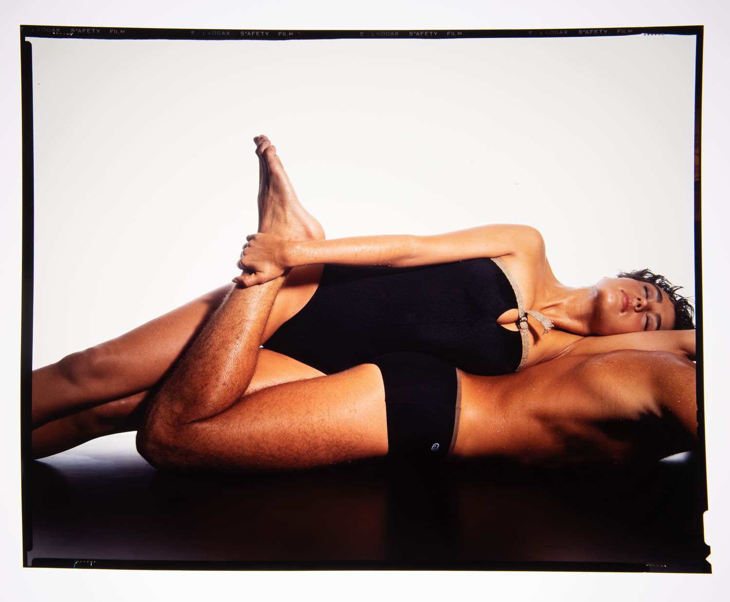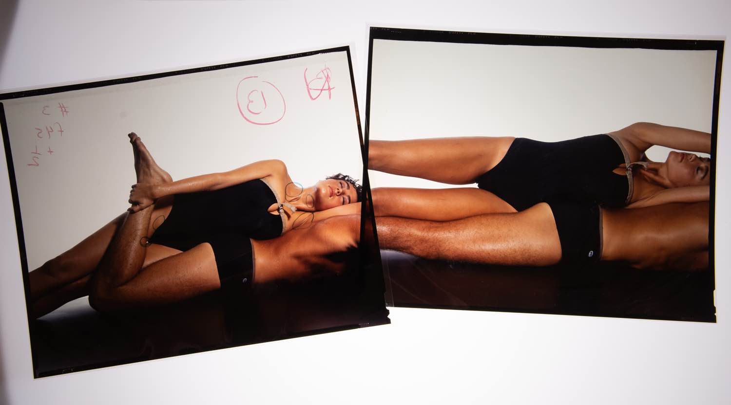 Irving Penn (Plainfield, 1917 - New York, 2009) per catalogo Gucci P/E 1983, foto modelli stesi in costumi da bagno - 2 lastre fotografiche - set n.11, cm 25x20 Usure e segni del tempo. Provenienza: Collezione Nando Miglio.