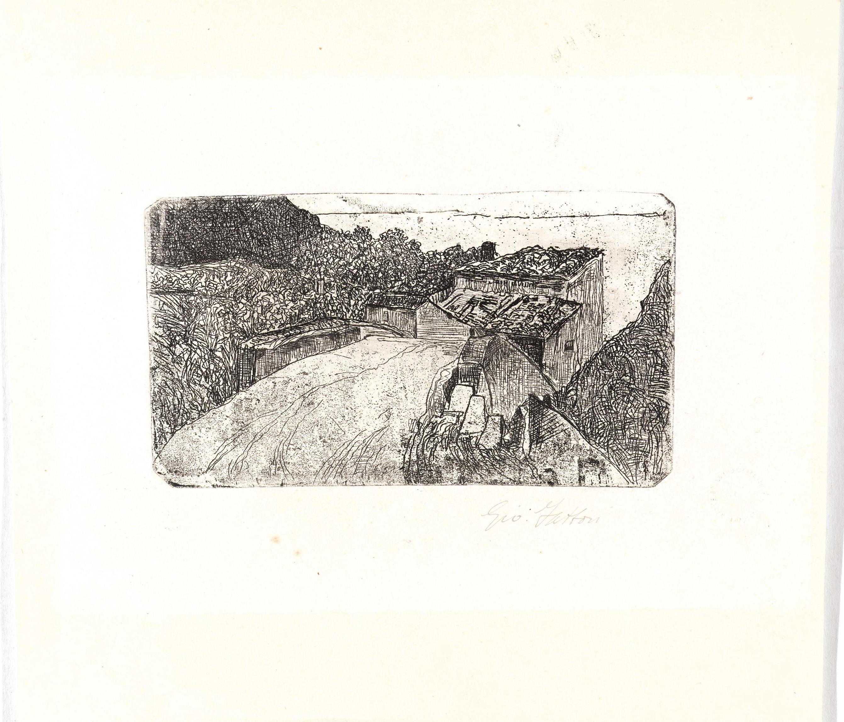 Acquaforte su zinco. mm 98x175. Foglio: mm 262x273. Bonagura, 52. Baboni, XXXVII. Timpanaro, 37, 38.