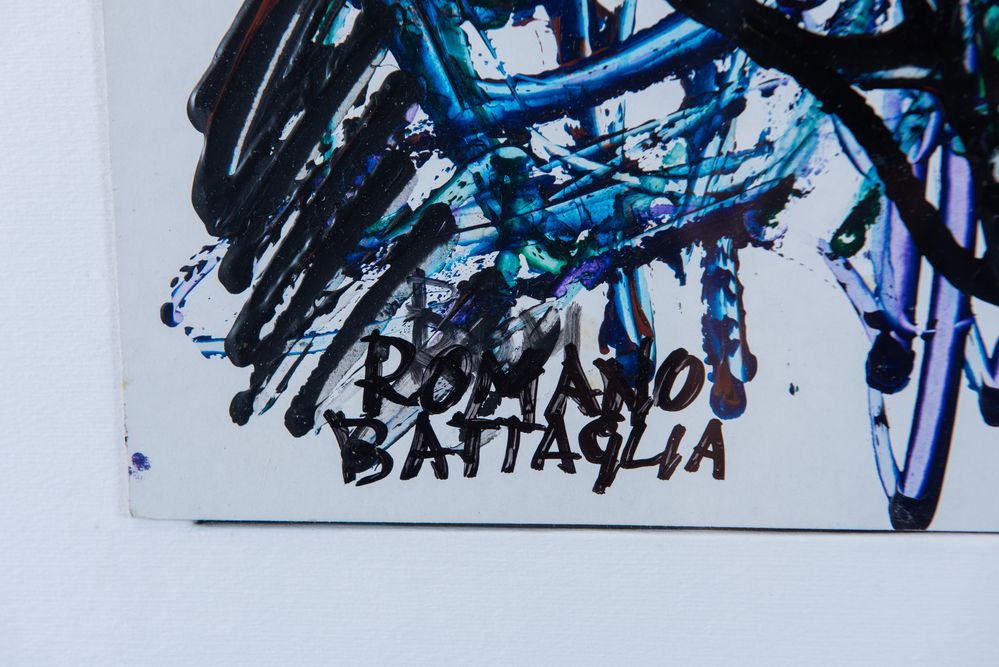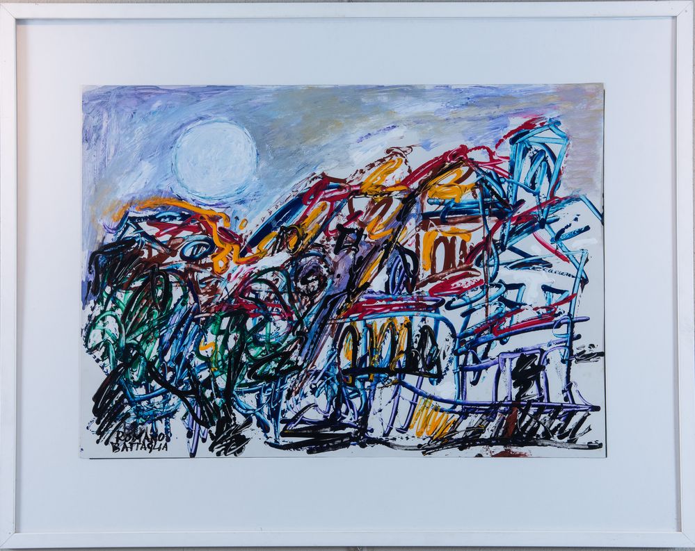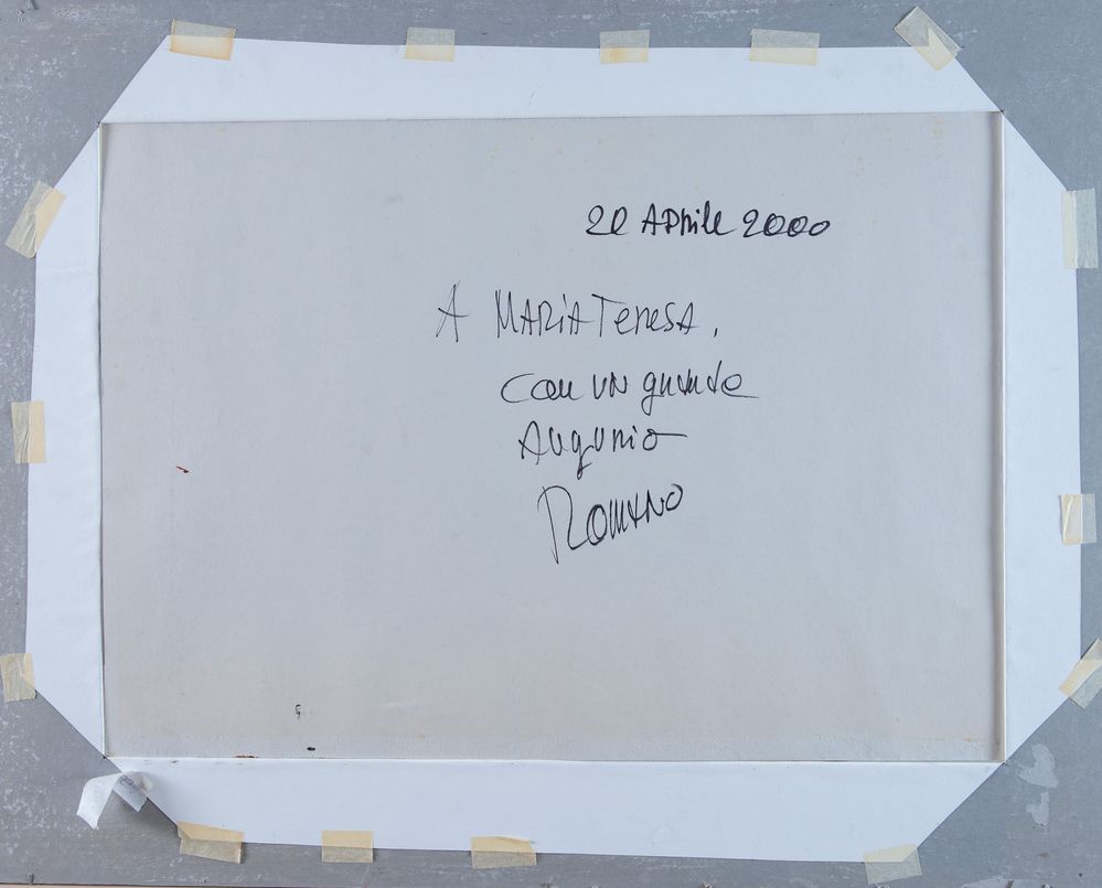 ROMANO BATTAGLIA (Marina di Pietrasanta 1933 – 2012) "Senza titolo", 2000. Tecnica mista su carta. Cm 50,5x70,5. Opera firmata in basso a sinistra Romano Battaglia. Al retro dedica firmata e datata 20 aprile 2000, Romano.