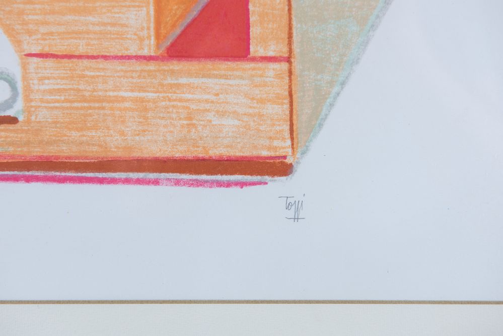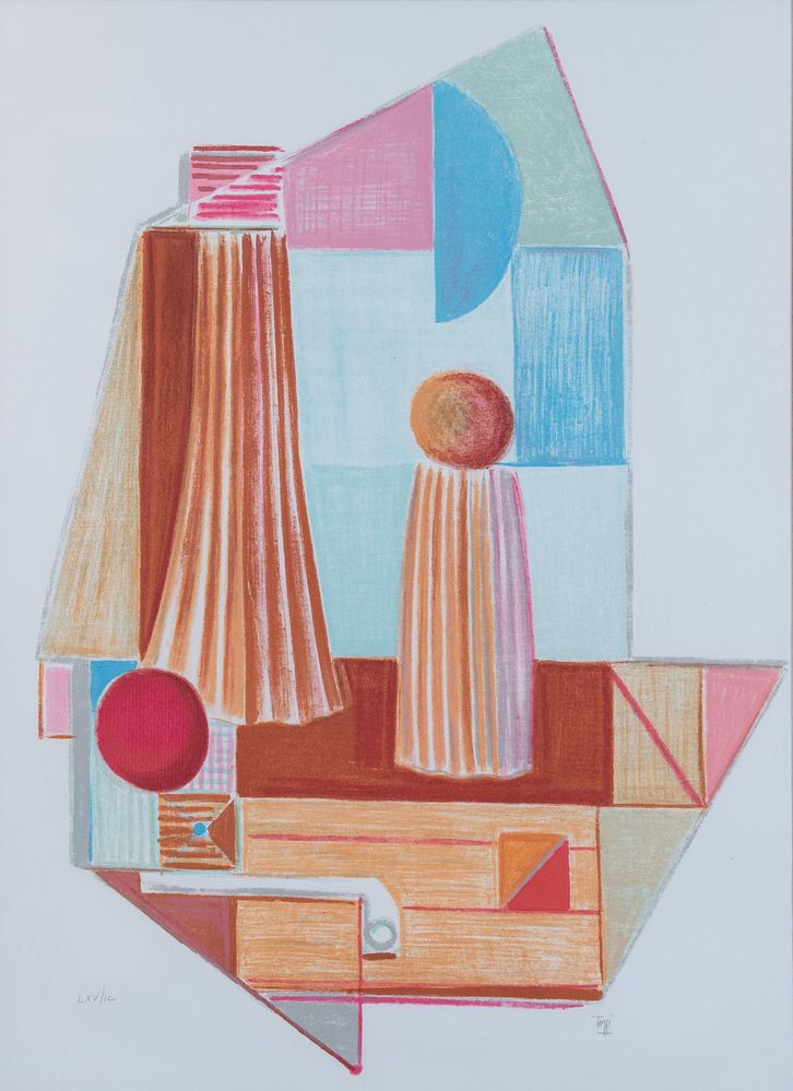 MARIO TOZZI (Fossombrone 1895 – Saint Jean du Gard 1979) “Senza titolo”. Litografia a colori su carta. Cm 65,5x48. Opera firmata in basso a destra Tozzi. Reca numeri di tiratura in lettere romane in basso a sinistra LXV/IC. Al retro reca etichetta della Galleria d’Arte Marescalchi, Bologna; reca inoltre timbro Mario Marescalchi, Bologna con firma Mario Marescalchi.