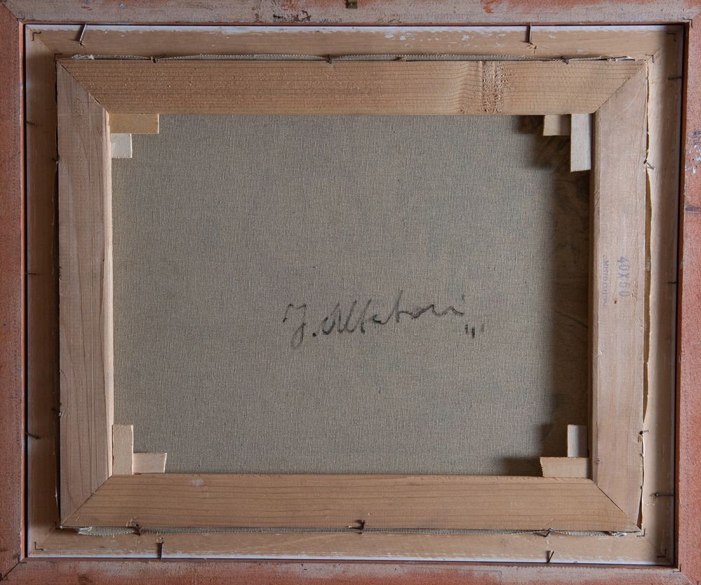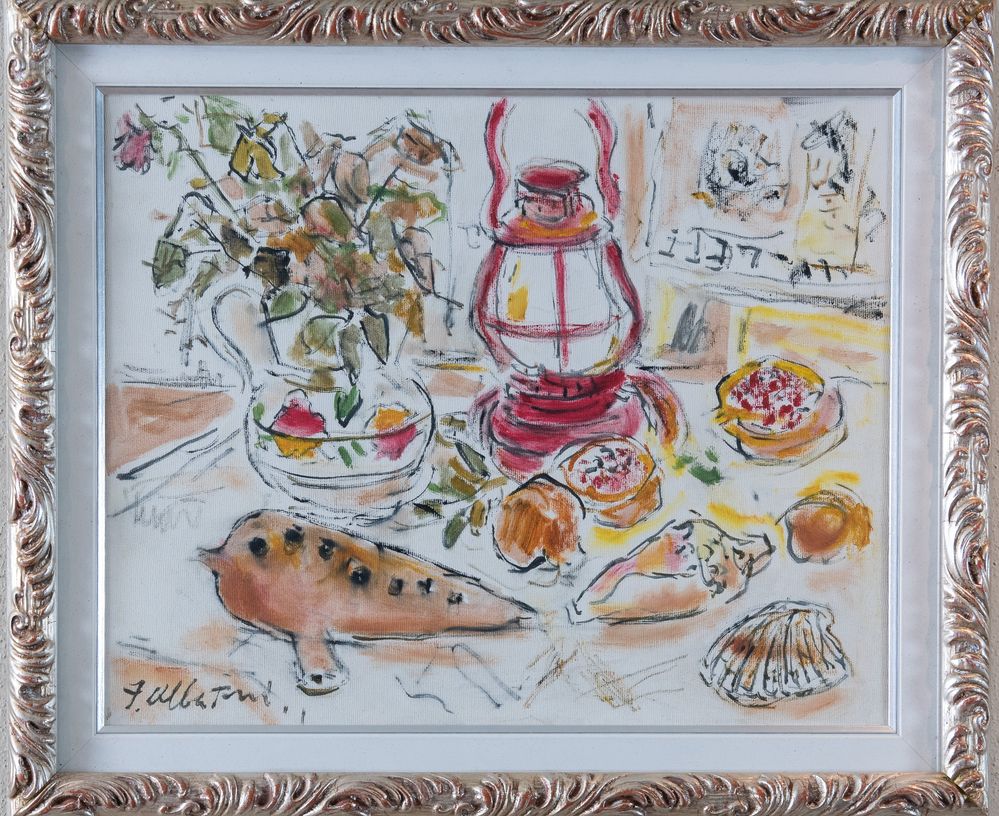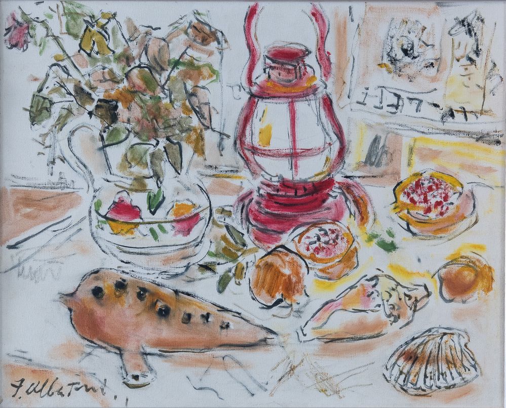 FILIPPO ALBERTONI (Reggio Emilia 1930 - Bologna 2011) "Natura morta". Olio su tela. Cm 40x50. Opera firmata in basso a sinistra F. Albertoni. Al retro opera firmata F. Albertoni.
