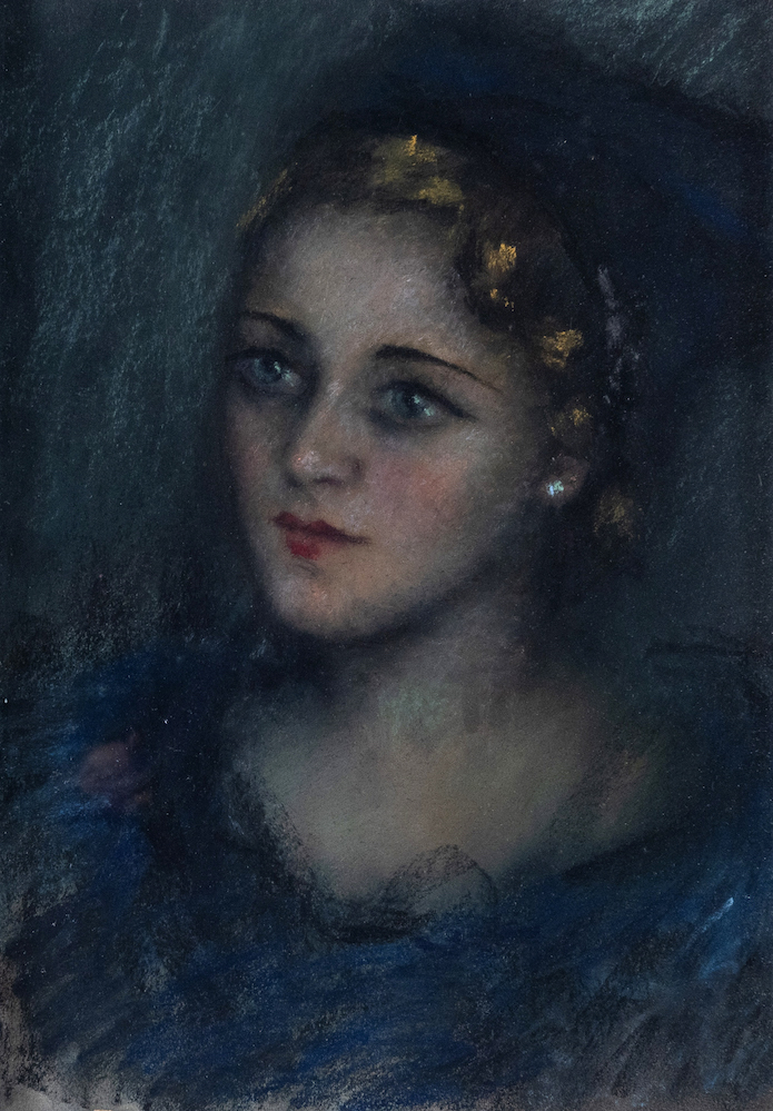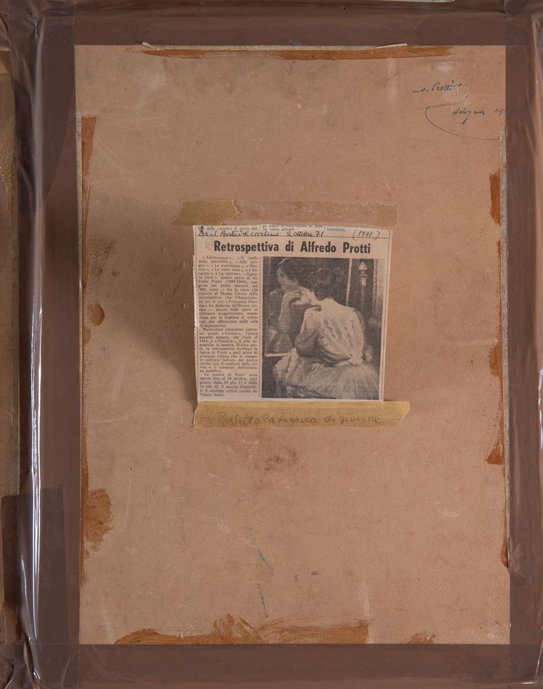 ALFREDO PROTTI (Bologna 1882 - 1949), attr. "Figura di giovine" ,1929. Pastello su carta. Cm 49x36. Al retro opera firmata e datata A. Protti, Bologna 1929.