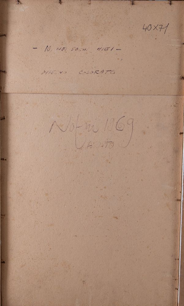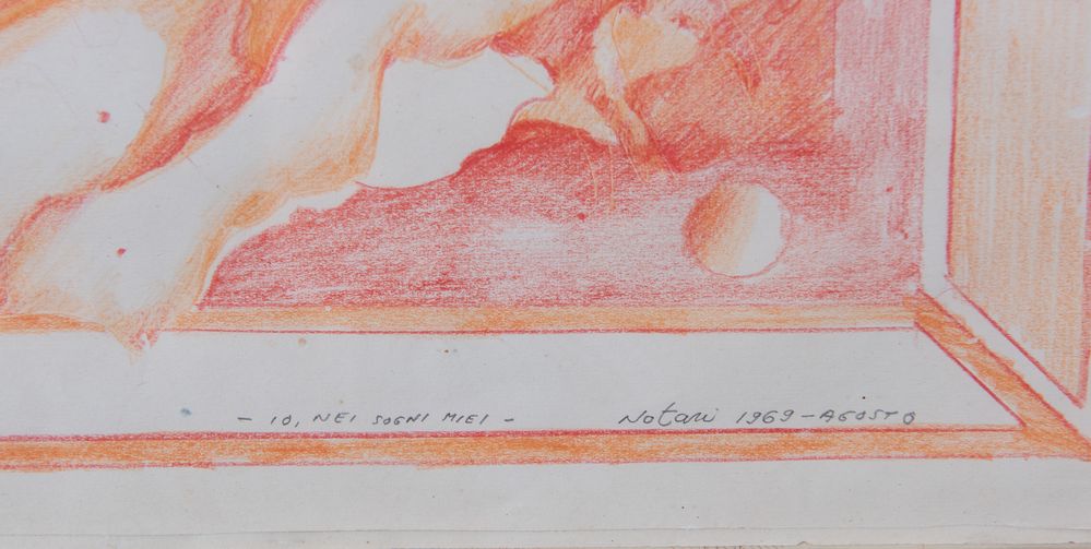 ROMANO NOTARI (Foligno 1933) "Io, nei miei sogni", 1969. Pastello su carta. Cm 70x40. Opera intitolata, firmata e datata in basso a destra Io, nei miei sogni, Notari 1969-agosto. Al restro Io, nei miei sogni, Notari 1969-agosto.