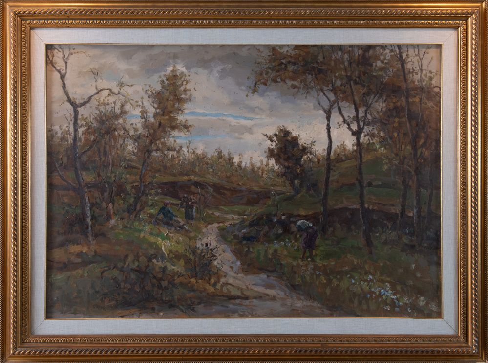 GARZIA FIORESI (Vigevano 1888 - Bologna 1968) "Senza titolo". Olio su cartone. Cm 73x103. Opera firmata in basso a sinistra G. Fioresi. Al retro opera firmata G. Fioresi.
