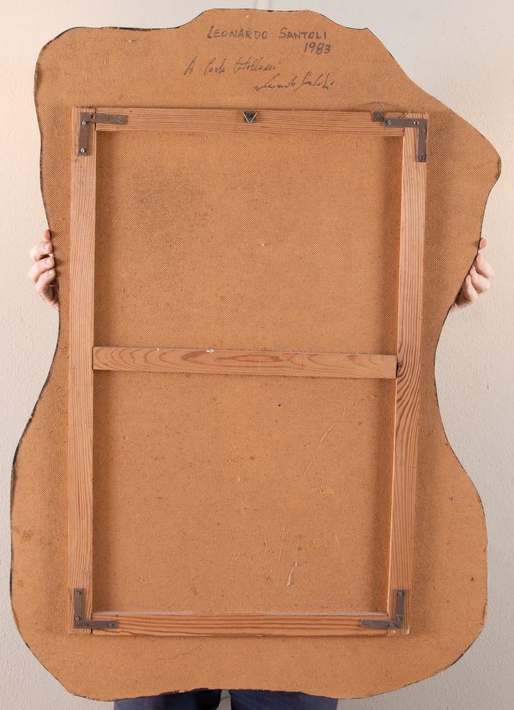 LEONARDO SANTOLI (Firenze 1959) "Pelle", 1983. Tecnica msita su faesite. Cm100x70. Al retro opera firmata e datata Leonardo Santoli 1983. Opera accompagnata da autentica su fotografia a firma del maestro in data 02/05/2008.