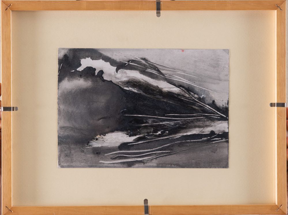 LIDIA PUGLIOLI (S. Lazzaro di Savena 1919 - Bologna 2013) "Mia testa come un ventaglio", 1995. Tecnica mista su carta. Cm 25x17,5. Al retro opera intitolata, firmata e datata Mia testa come un ventaglio Lidia Puglioli 1995.