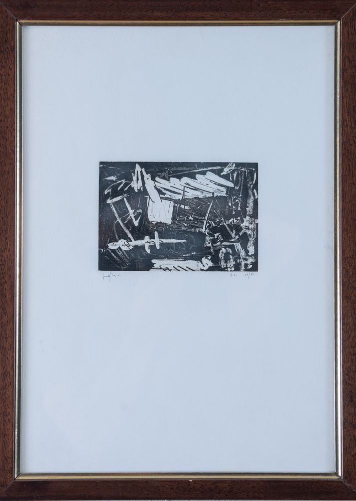 EMILIO VEDOVA (Venezia 1919 - 2006) "Senza titolo", 1974. Incisione su carta. Lastra: cm 11,5x16,5. Opera firmata e datata in basso a sinsitra Vedova 74. Reca numeri di tiratura in basso a destra 36/50.