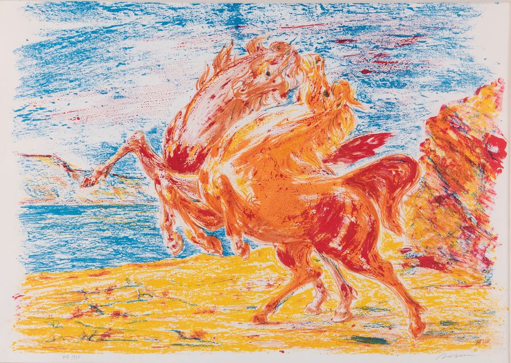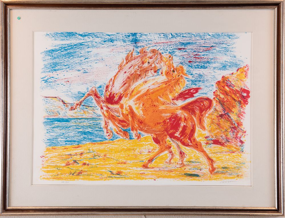 ALIGI SASSU (Milano 1912 - Pollença 2000) "Senza titolo". Litografia a colori su carta. Lastra: cm 47x65. Opera firmata in basso a destra Sassu. reca numeri di tiratura in bassoa sinistra 108/120.
