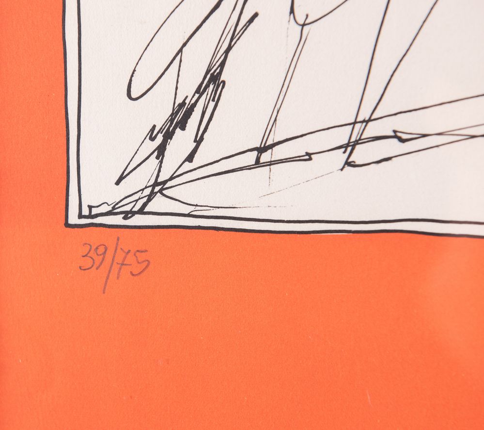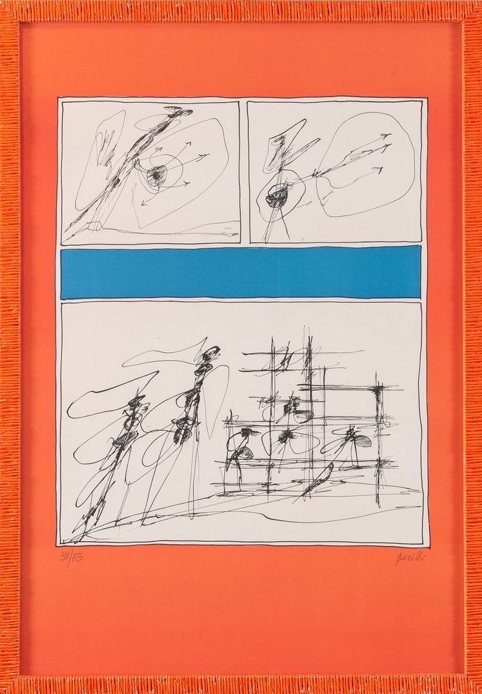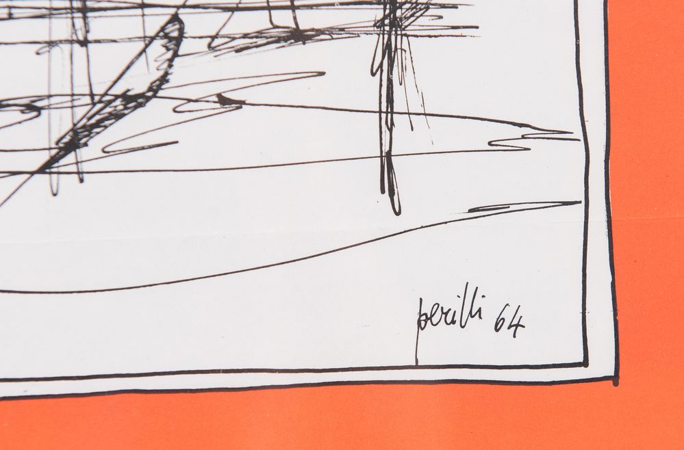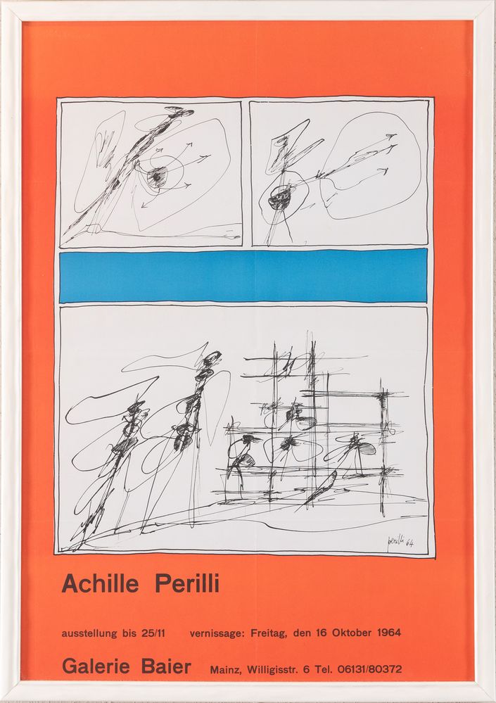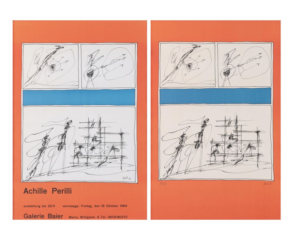 ACHILLE PERILLI (Roma 1927) "Senza titolo", 1964. Lotto composto da litografia e manifesto. Cadauno di cm 60x40. Litografia firmata in basso a destra Perilli e recante numeri di tiratura in basso a sinistra 39/75.