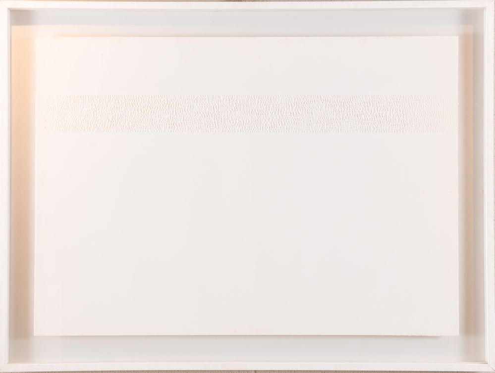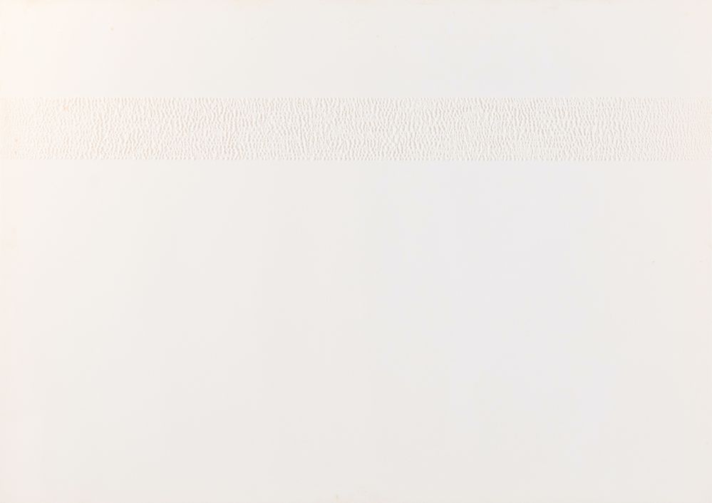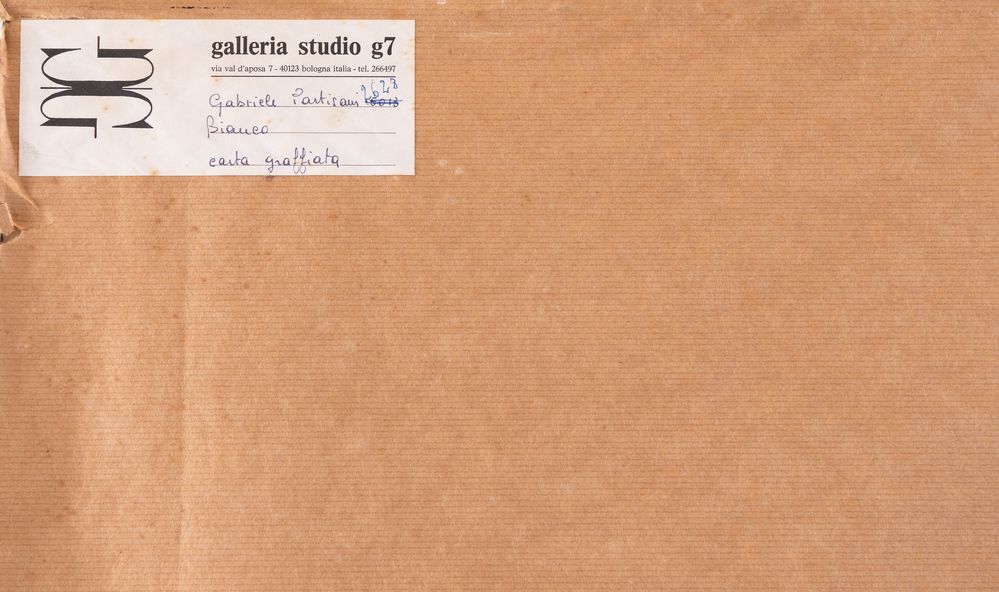 GABRIELE PARTISANI (Bologna 1945). "Bianco". Carta graffiata. Cm 50x70. Al retro reca etichetta etichetta della Galleria d'arte G7, Bologna.