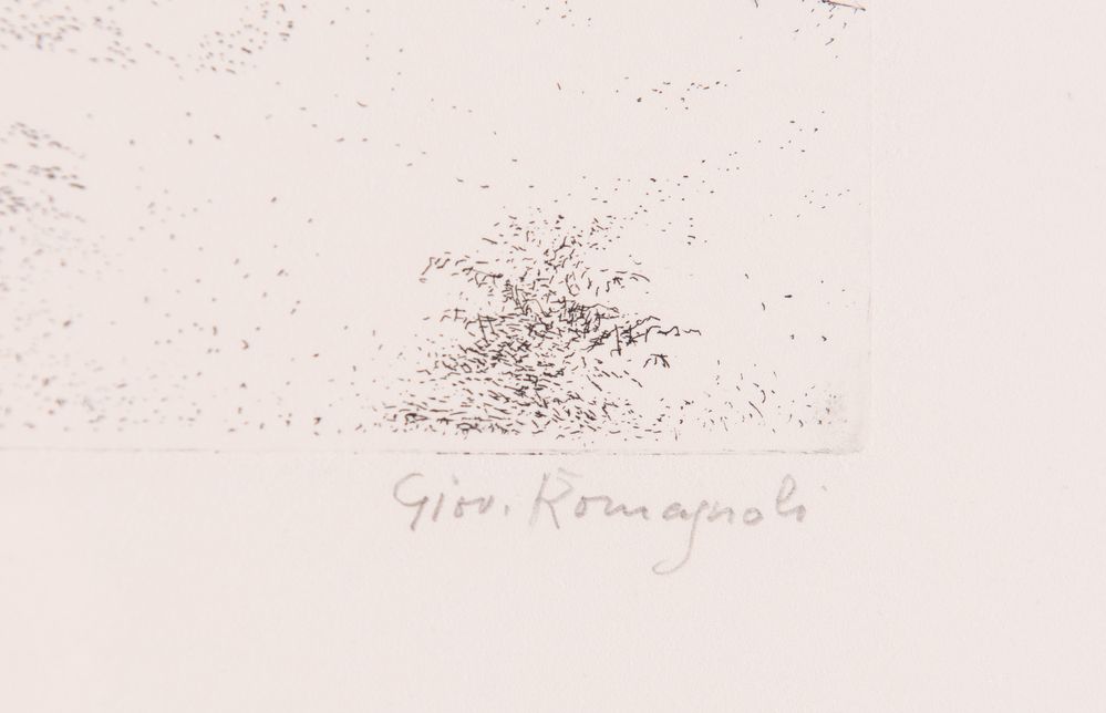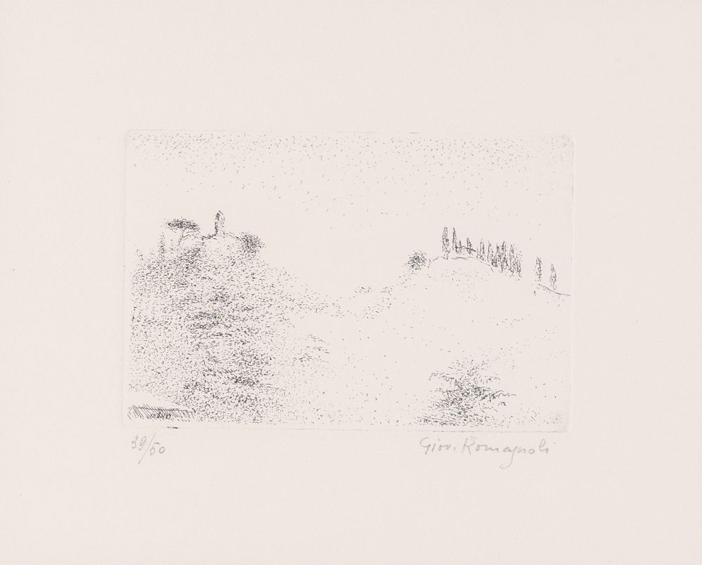 GIOVANNI ROMAGNOLI (Faenza 1893 - Bologna 1976) "Senza titolo". Incisione su carta. Lastra: cm 10x15. Opera firmata in basso a destra Giov. Romagnoli. Reca numeri di tiratura in basso a sinistra 39/50.