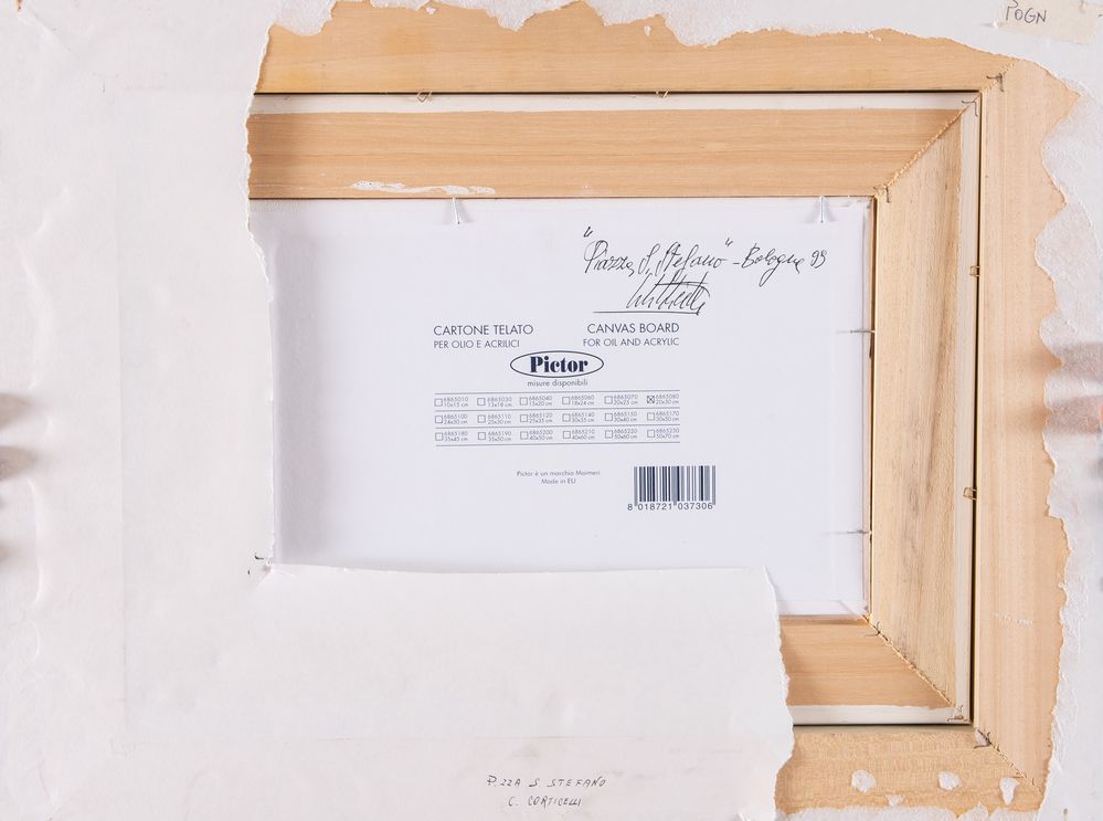 CARLO CORTICELLI (XX secolo) "Piazza Santo Stefano", 1999. Olio su cartone...