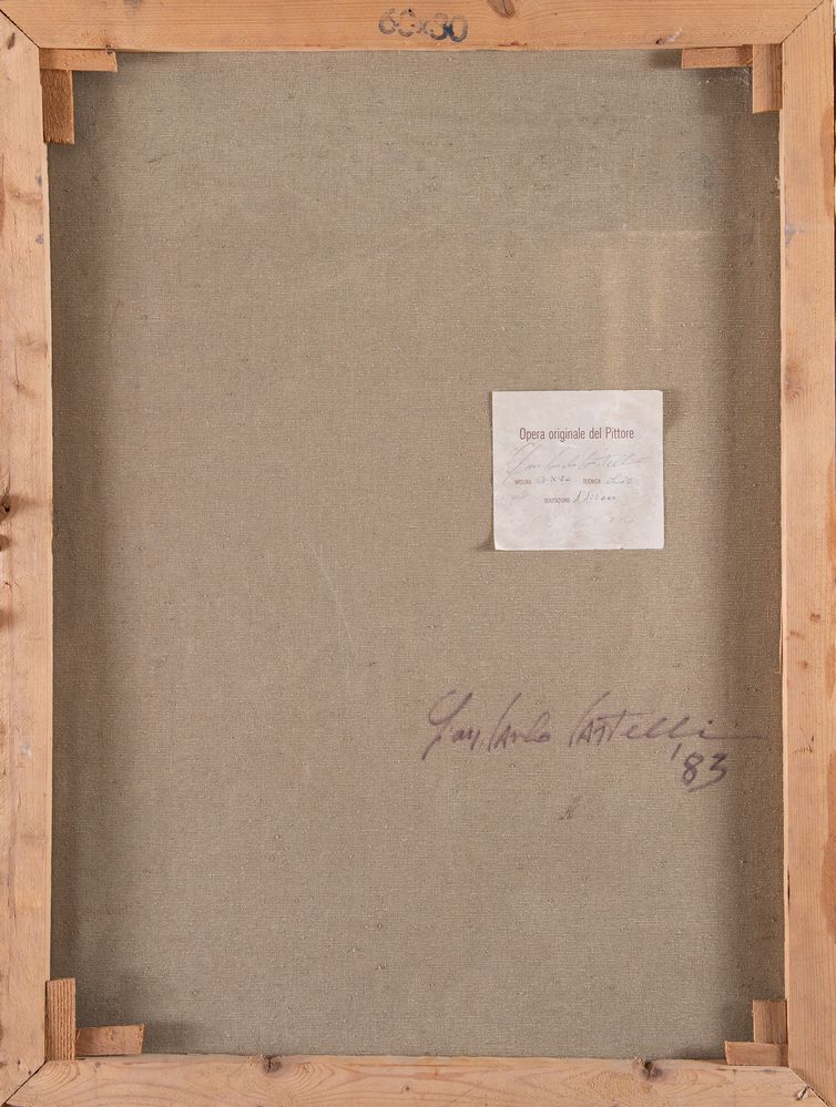 GIANCARLO CASTELLI (XX secolo) "Senza titolo", 1983. Olio su tela. Cm 80x60. Al retro opera firmata e datata Giancarlo castelli '83. Al retro reca autentica a firma dell'artista.
