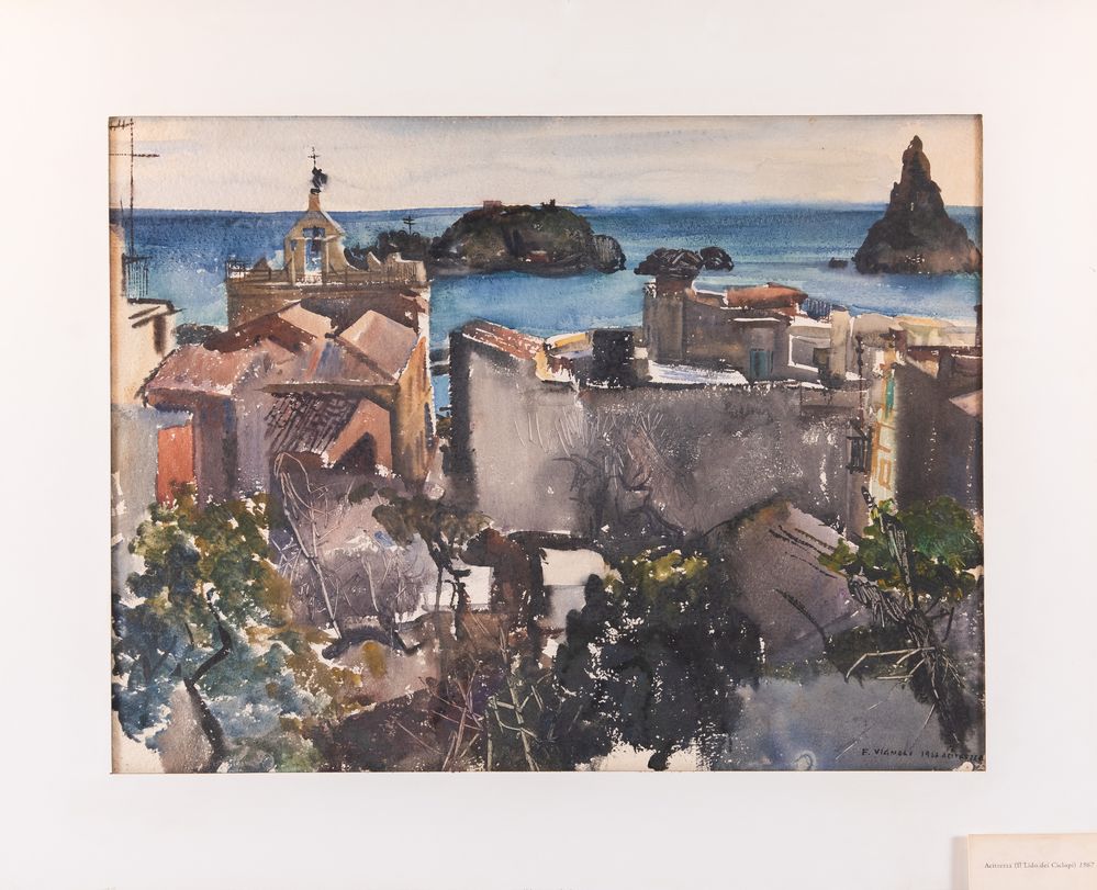 FARPI VIGNOLI (Bologna 1907 – 1997) "Acitrezza", 1963. Acquerello su carta. Cm 50x66,5. Opera firmata e datata in basso a destra F. Vignoli 1963.