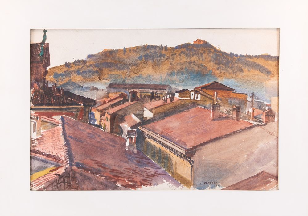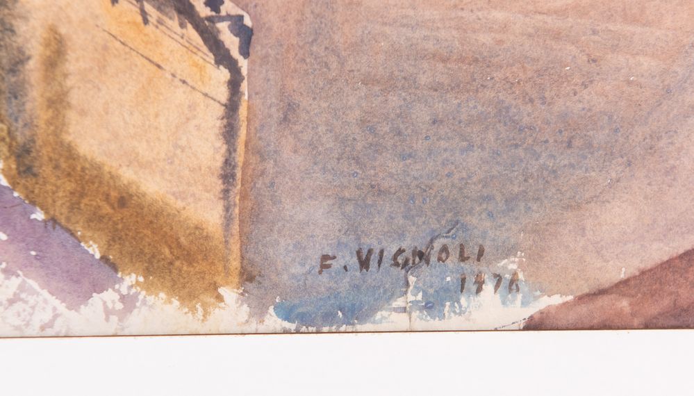 FARPI VIGNOLI (Bologna 1907 – 1997) "Scorcio su villa Aldini", 1976. Acquerello su carta. Cm 47,5x71,5. Opera firmata e datata in basso a destra F. Vignoli 1976.