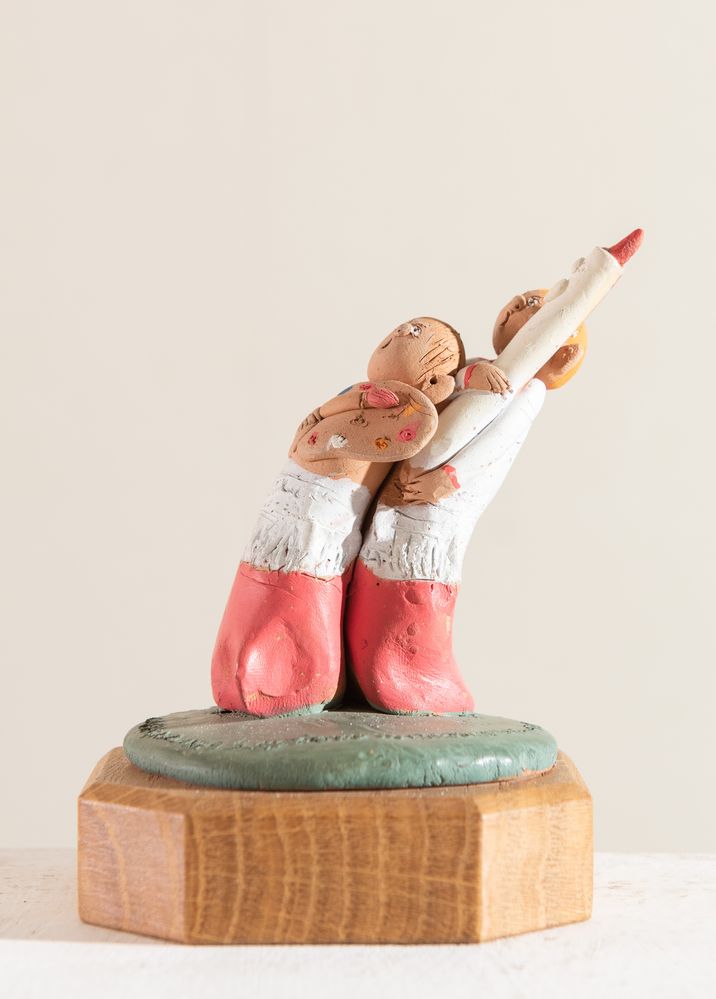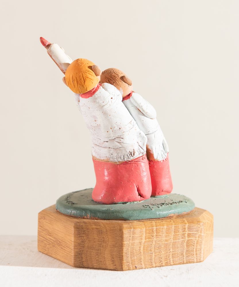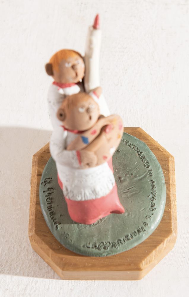 QUINTO GHERMANDI (Crevalcore 1916 - San Lazzaro di Savena 1994) "L'apparizione", 1986. Scultura in terracotta policroma. Cm 10,5x8x8,5. Opera firmata, intitolata e datata alla base Q. Ghermandi, L'apparizione, 1986.