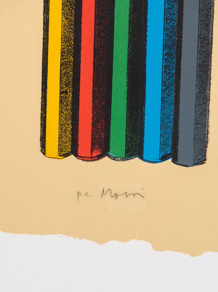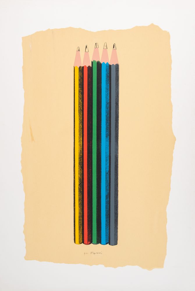 PIERO MANAI (Bologna 1951 - 1988) "Matite". Litografia a colori su carta. Cm...