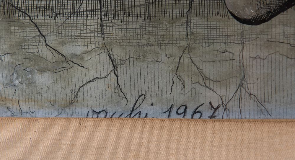 SERGIO VACCHI (Castenaso 1925 - Siena 2016) "Senza titolo", 1967. Tecnica mista su cartoncino. Cm 47x66. Opera firmata e datata in basso a sinistra Vacchi 1967.