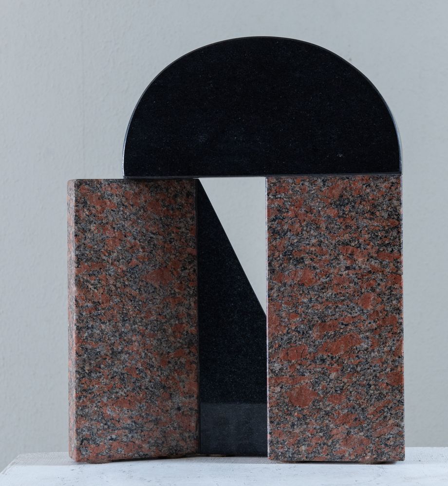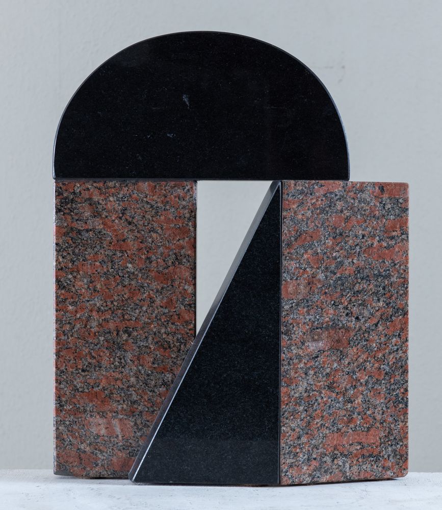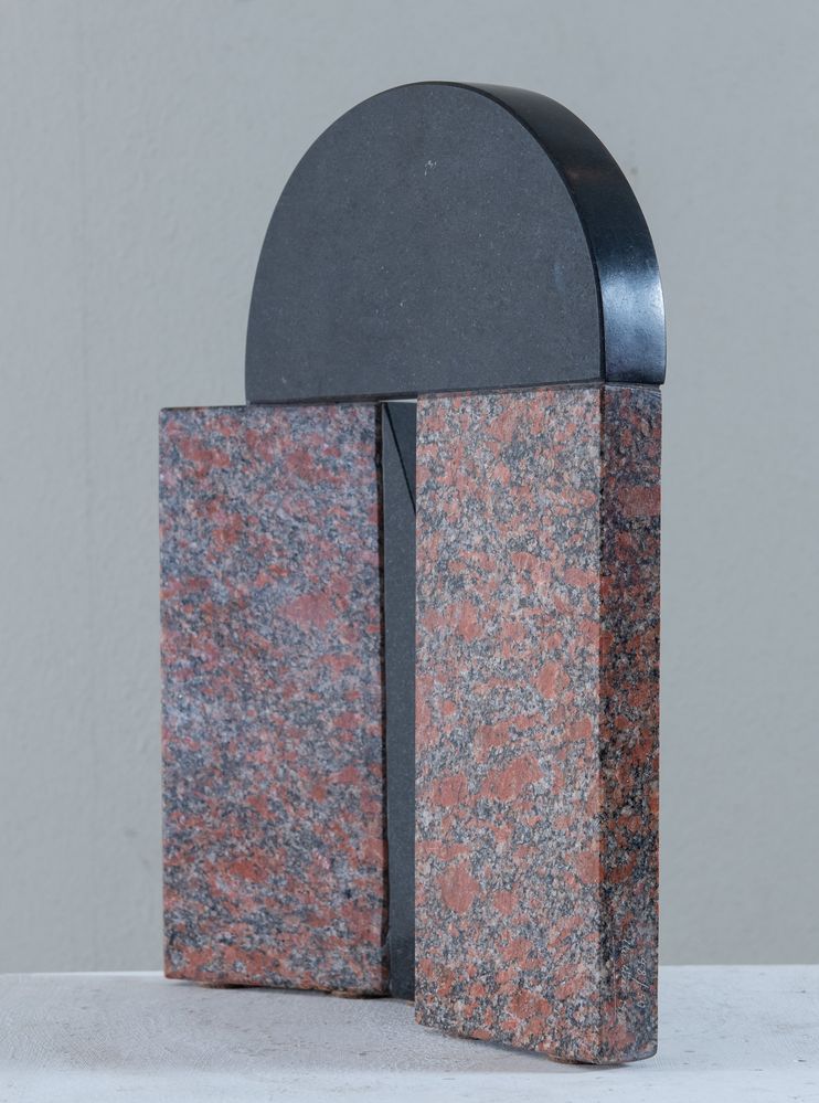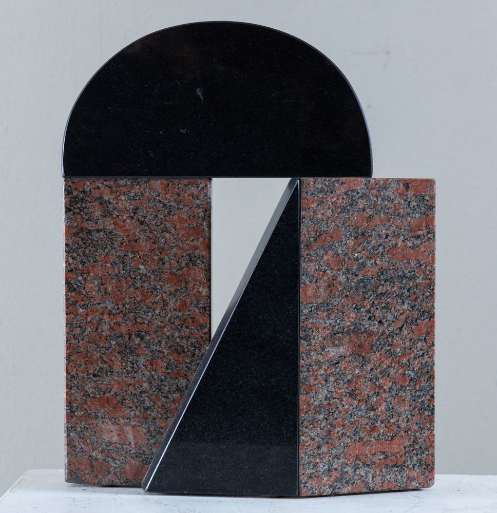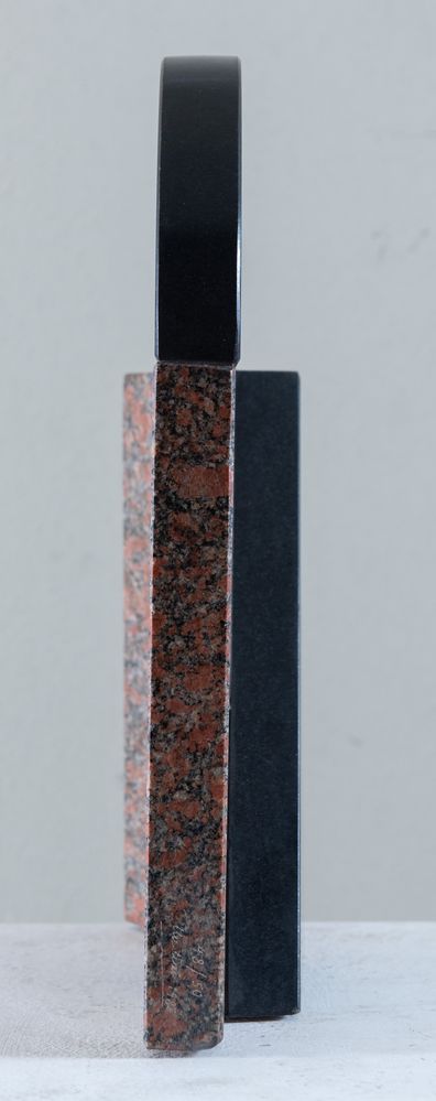 GIUSEPPE UNCINI (Fabriano 1929 - Trevi 2008) "Senza titolo", 1983. Scultura in granito nero e granito rosa. Cm 36,5x29x8. A lato opera firmata, datata e tirata Uncini 1983 e 48/50.