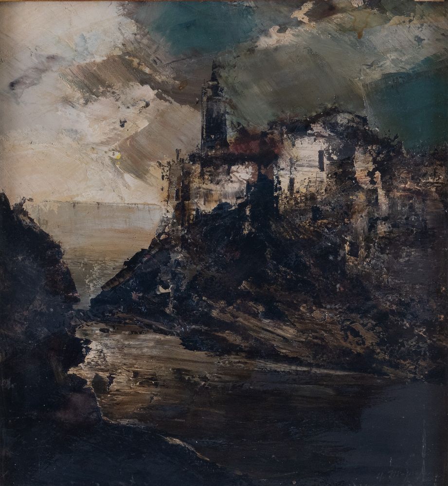UBALDO MAGNAVACCA (Modena 1885 - 1957) "Telaro, golfo de La Spezia". Olio su tavola. Cm 43,5x40,5. Opera firmata in basso a destra U. Magnavacca. Al retro opera intitolata e firmata Telaro golfo de La spezia, U. Magnavacca.