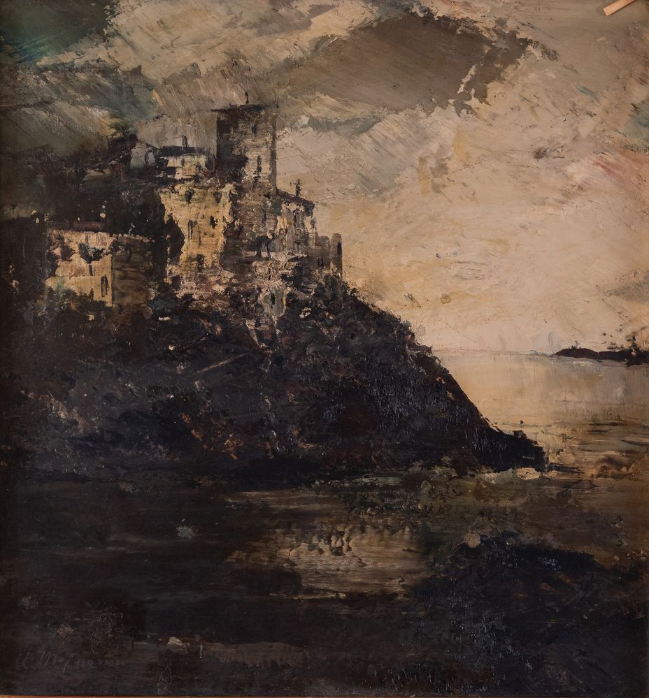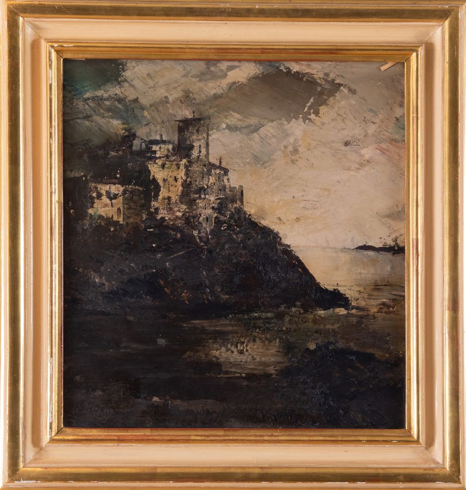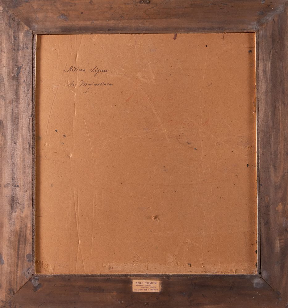 UBALDO MAGNAVACCA (Modena 1885 - 1957) "Riviera ligure". Olio su tavola. Cm 43,5x40,5. Opera firmata in basso a sinistra U. Magnavacca. Al retro opera intitolata e firmata "Riviera ligure" U. Magnavacca.