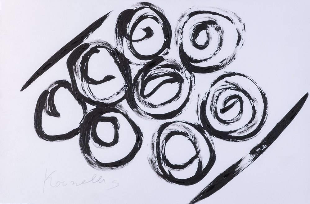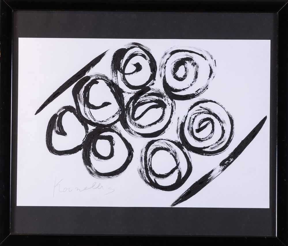 JANNIS KOUNELLIS (Pireo 1936 – Roma 2017) "Senza titolo" Tecnica mista su carta. Cm 30x45. Opera firmata in basso a sinistra Kounellis. Opera accompagnata da autentica su fotografia a firma del maestro.