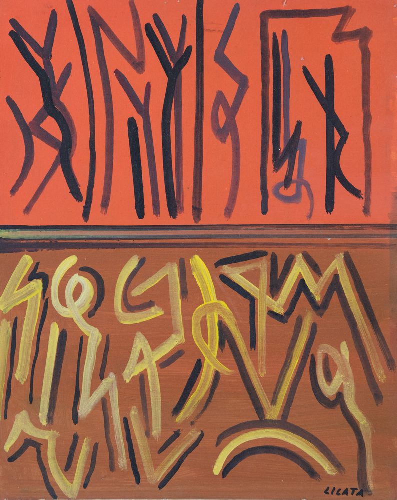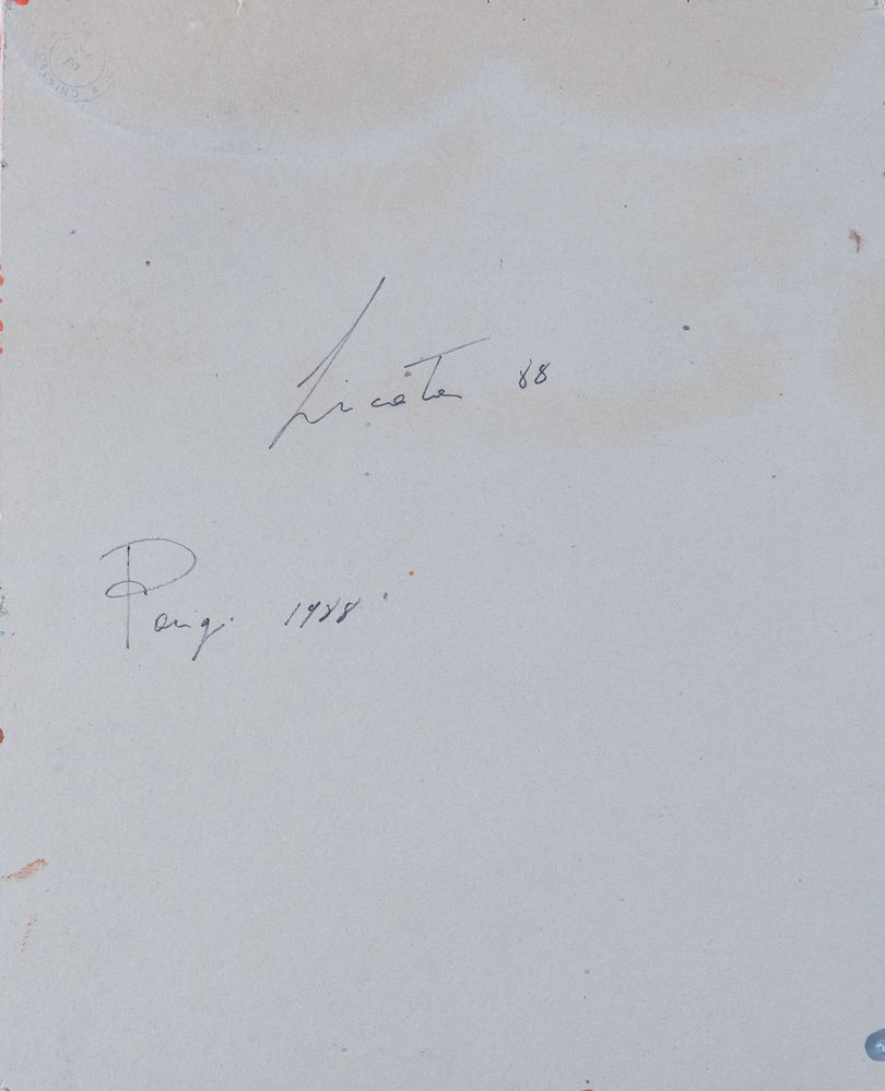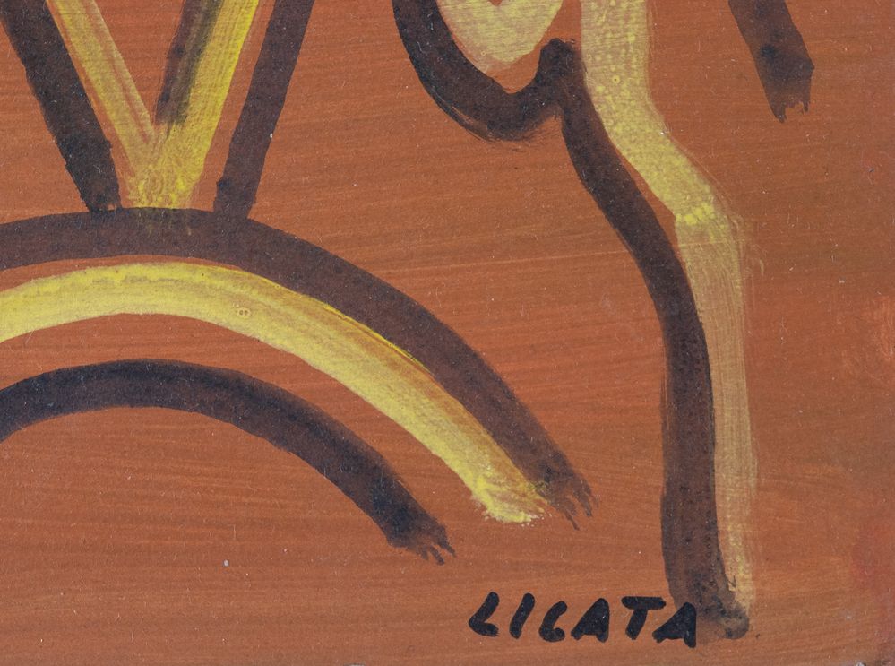 RICCARDO LICATA (Torino 1929 - Venezia 2014) "Senza titolo", 1988. Olio e tecnica mista su cartone. Cm 41x33,5. Opera firmata in basso a destra Licata. Al retro opera firmata e datata Licata 88 Parigi 1988. Al retro reca timbro non decifrato. Opera accompagna ada autentica su fotografia a firma del maestro in data 06/07/1981. Opera archiviata presso l'Archiio generale delle opere di Riccardo Licata con numero di archio 107/TMC009 e con timbro dello Studio d'Arte GR, Piazza del Popolo, Sacile (PN).