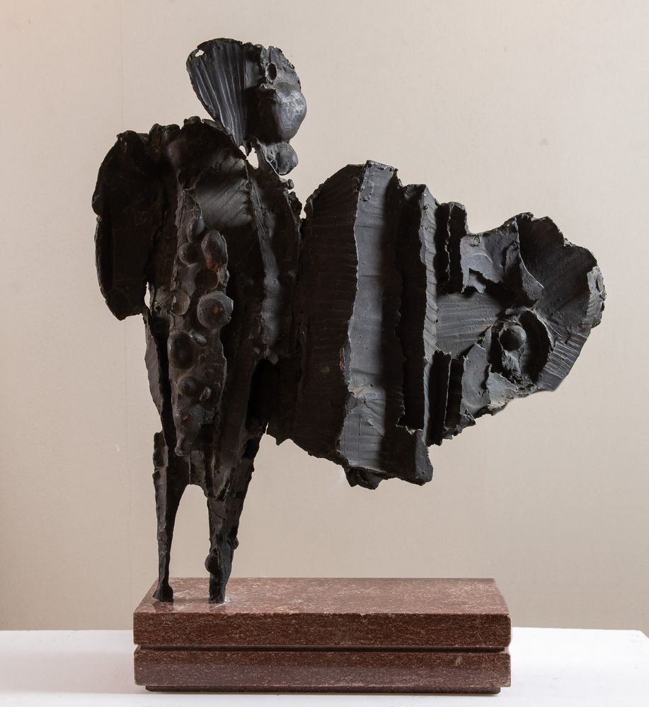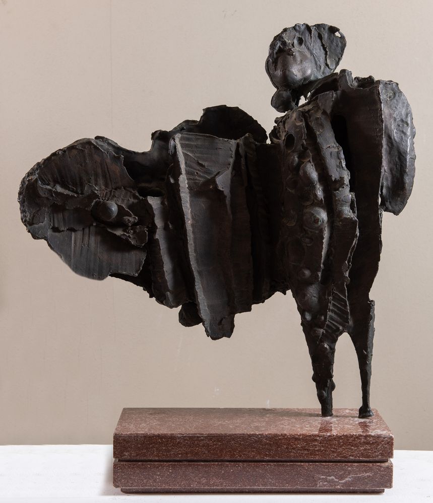 NICOLA ZAMBONI (Bologna 1943) "Senza titolo". Scultura in bronzo su basamento di marmo. Con basamento: cm 70x57x18. Opera firmata.