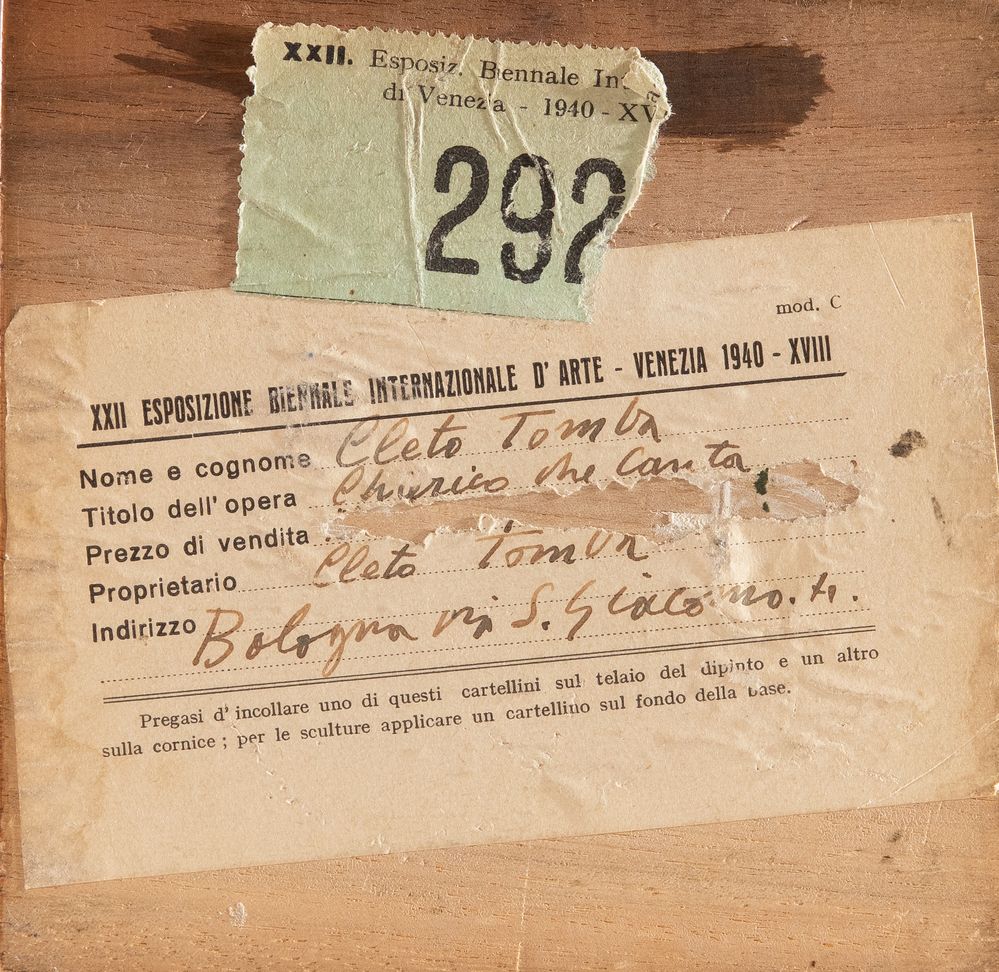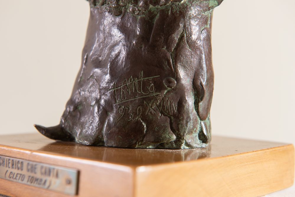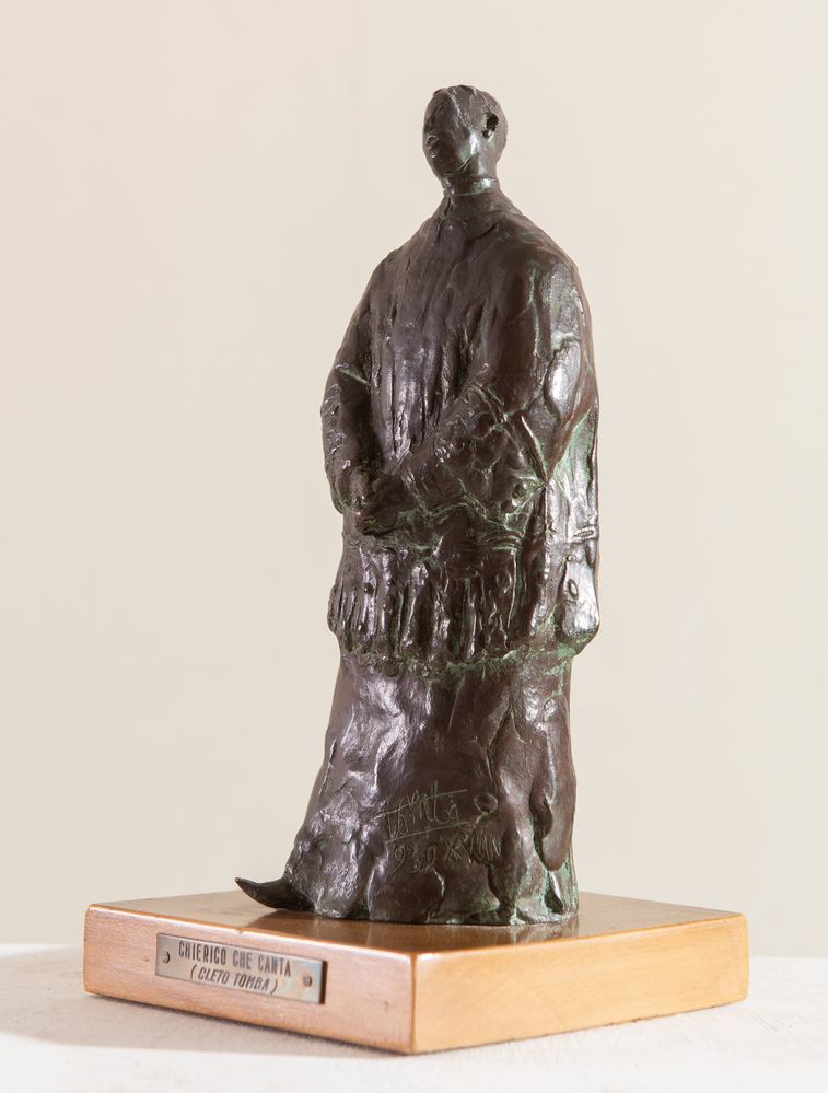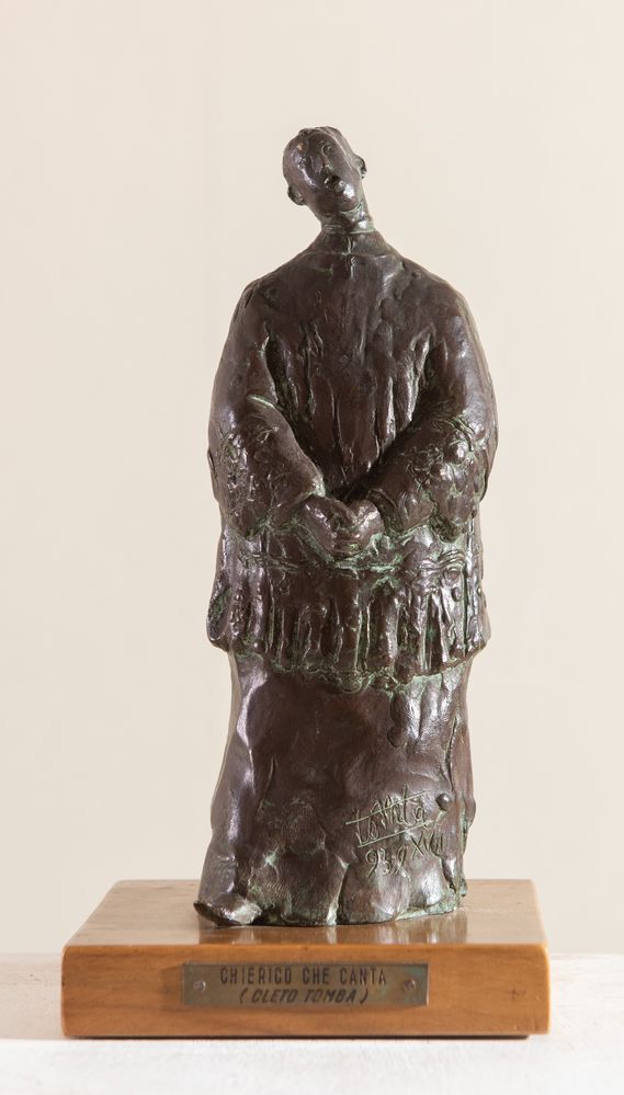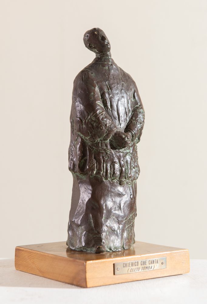 CLETO TOMBA (Castel San Pietro Terme 1898 - Bologna 1987) "Chierico che canta", 1939. Scultura in bronzo. Con basamento: cm 24x12x12. In basso opera firmata e datata Tomba 9 - 39 - XVII. Sotto la base reca etichetta della XII Esposizione Biennale Internazionale d'Arte di Venezia, 1940 con numero 292. Esposizioni: XII Esposizione Biennale Internazionale d'Arte di Venezia, 1940.