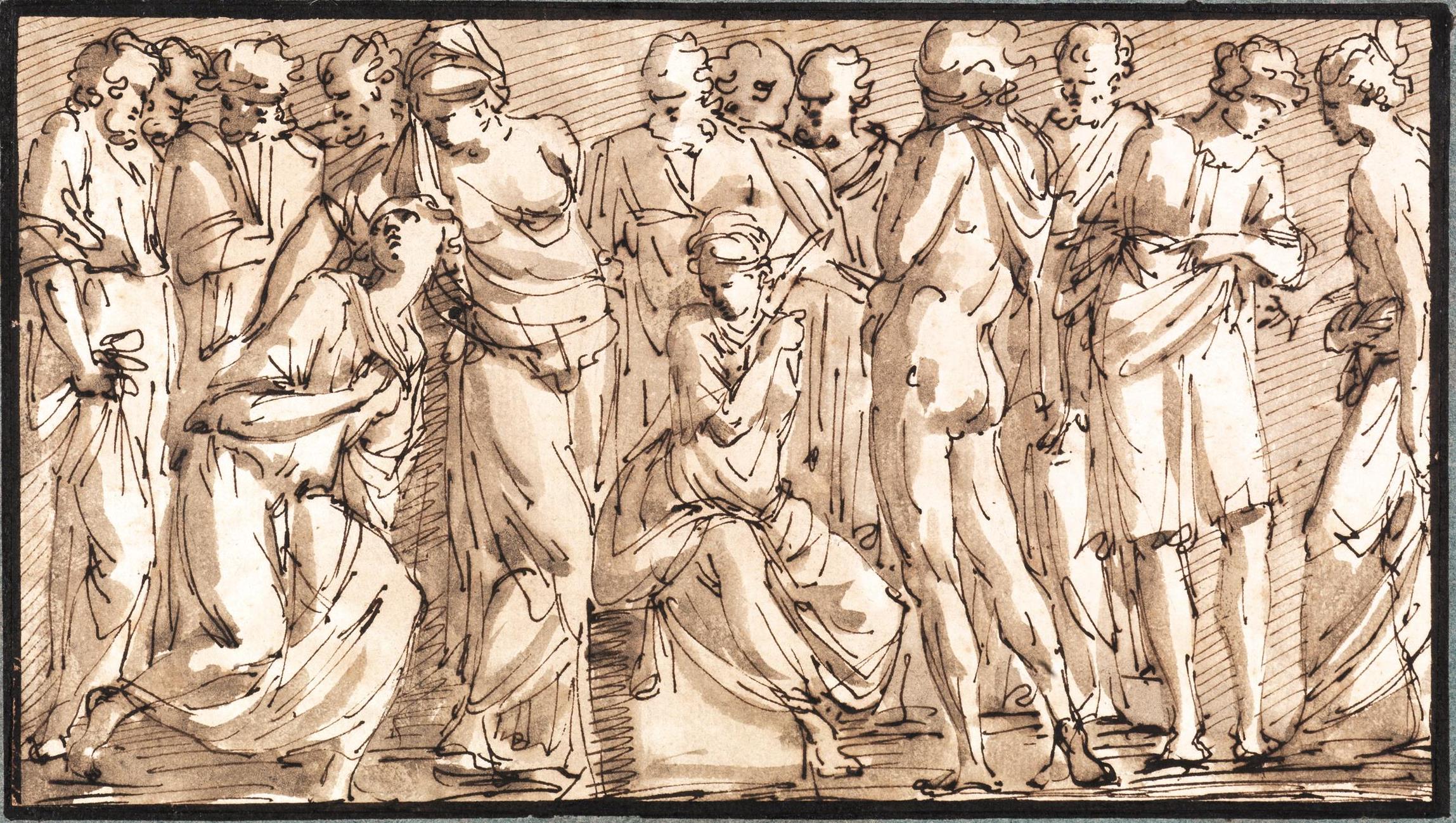 Lotto 229 | Scuola neoclassica emilianaGRUPPO DI FIGURE IN FORMA DI FREGIOPenna e...
