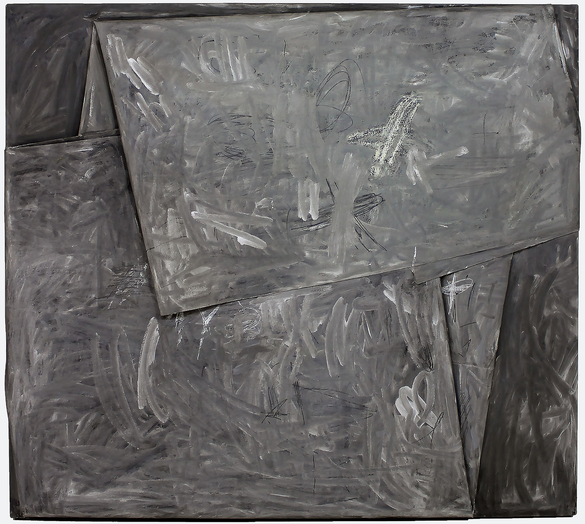 Cesare Berlingeri, Piegato in grigio, 2002, tecnica mista su tela piegata, cm 155x140. Archivio delle opere di Berlingeri. Pubblicazione: 'Cesare
