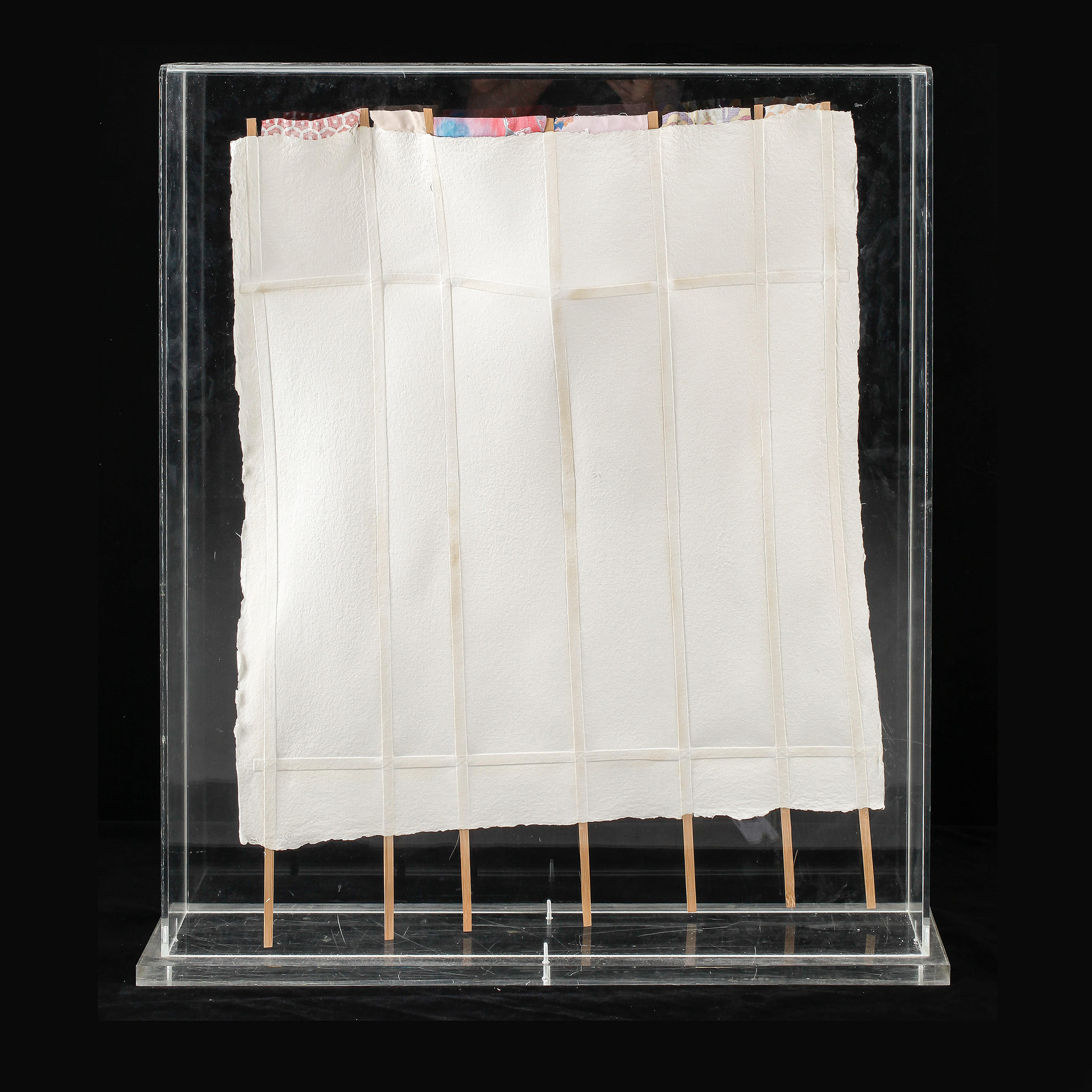 Robert Rauschenberg, Pit Boss (from Bones and Unions), 1975, carta fatta a mano, bambù e tessuto, cm 87x66. Esemplare 27/28. Provenienza: Christie's New York.