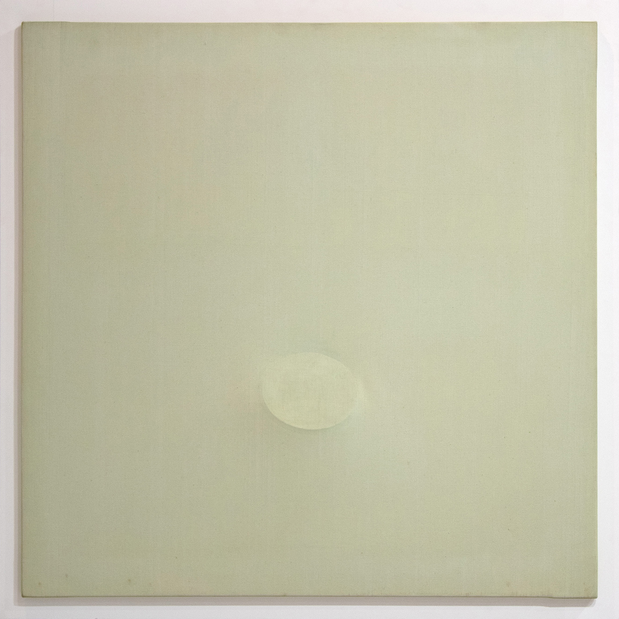Turi Simeti, Un ovale verde, 1978, acquarello su tela sagomata, cm 100x100. Archivio Turi Simeti - n.1978- V1001.