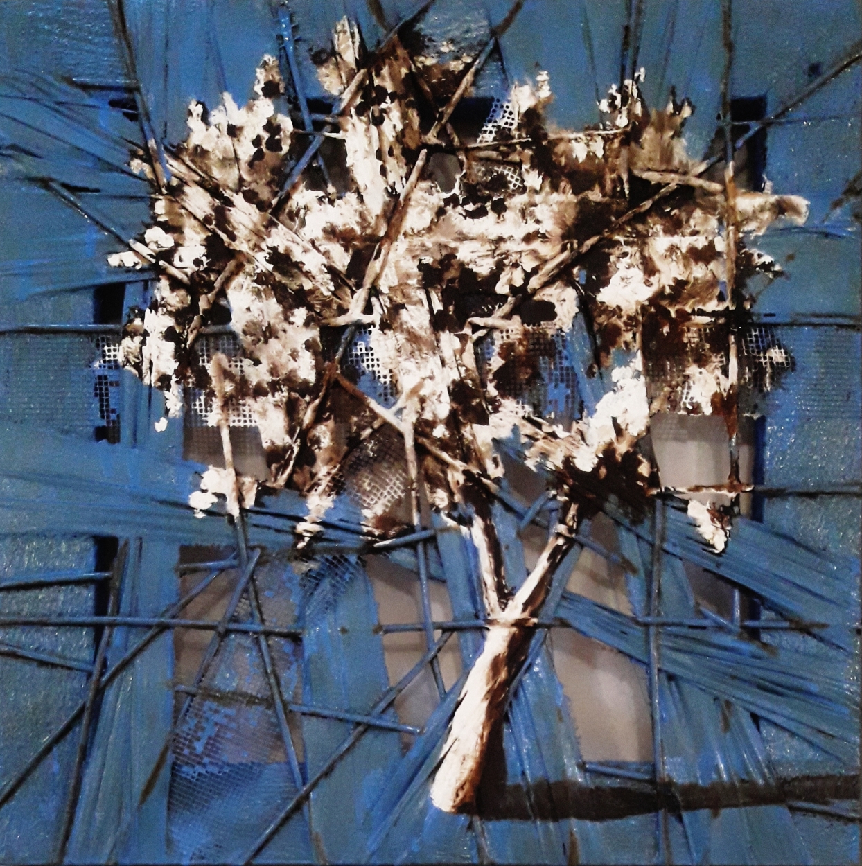“FRANCINO” Tollo 1937 “Senza titolo" tecnica mista, acrilici su tela, garze e corde su telaio in legno, cm 45x45 del 2017. Certificato di autenticità a cura dell'artista