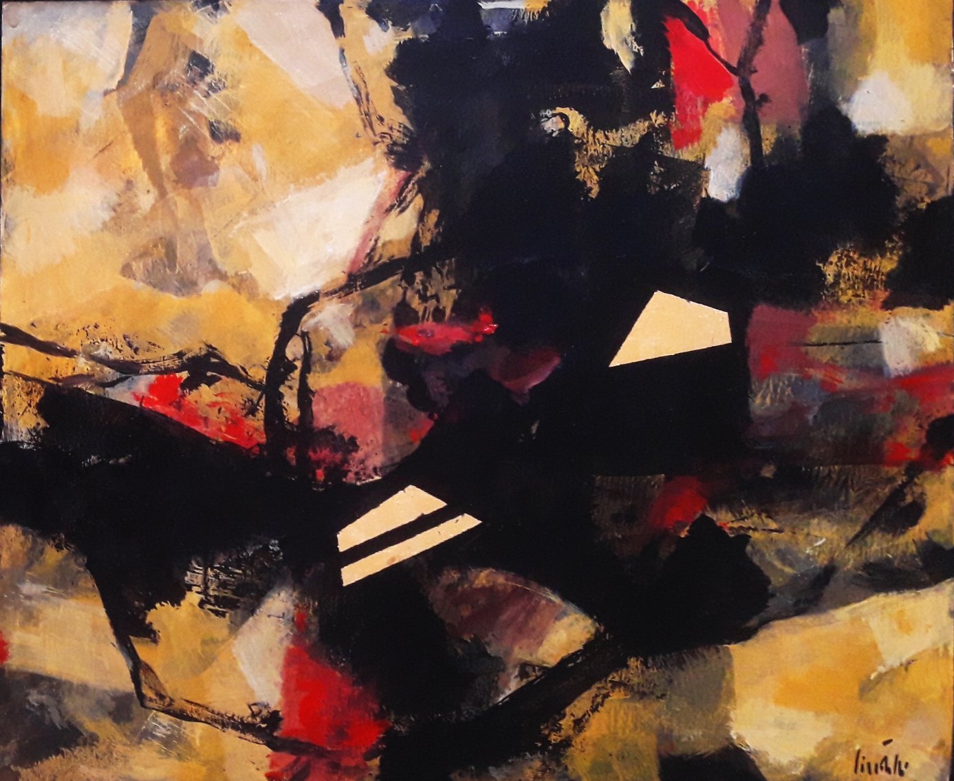 CICCOTELLI BENIAMINO Tollo 1937 "Senza titolo" tecnica mista e foglia oro su tavola cm 60x50 del 2018. Firmato in basso a destra e sul retro firma e data. Autentica a cura dell'artista su foto.