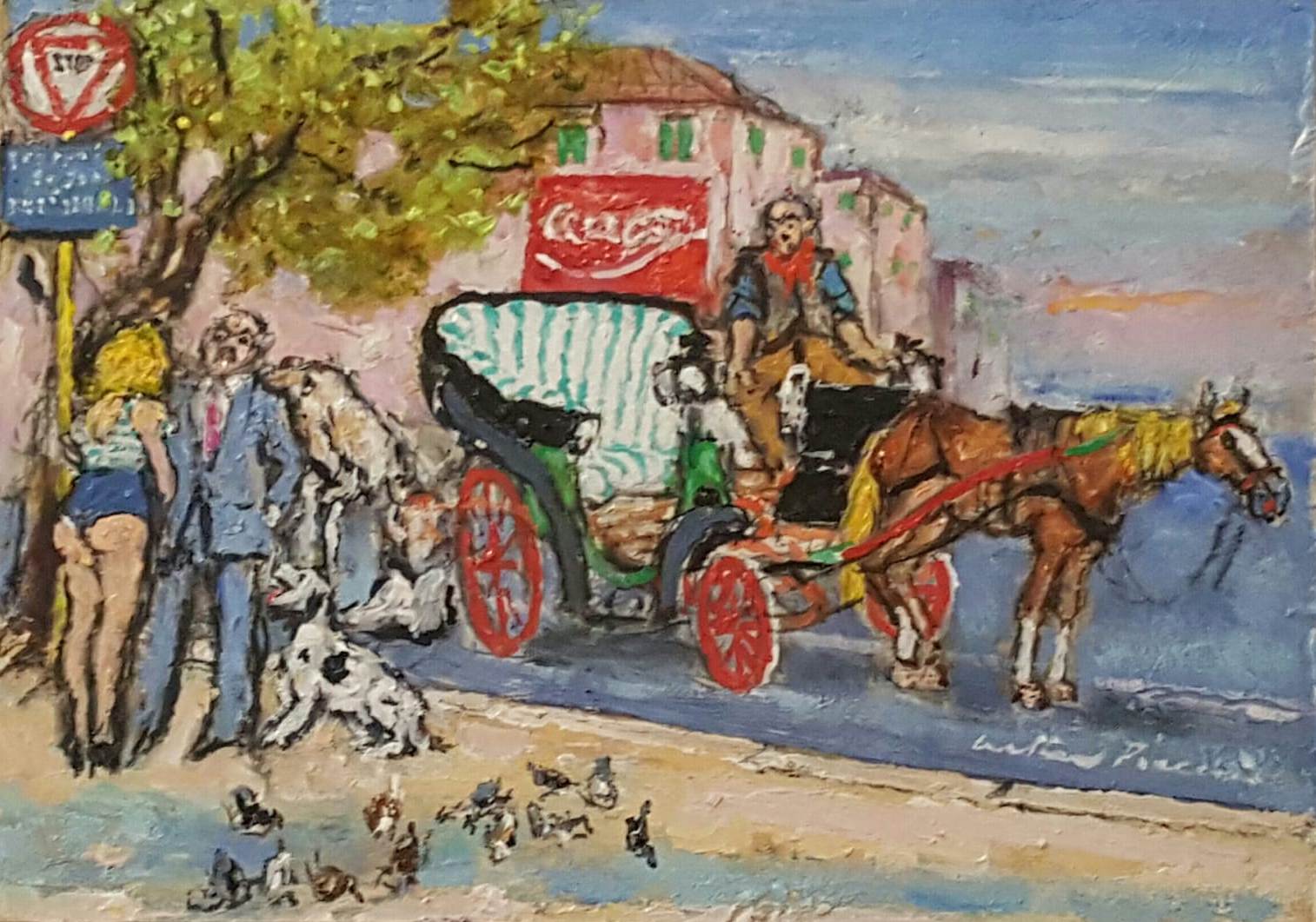 PIACESI WALTER Ascoli Piceno 1929 “L'attesa" olio su tavola cm 25x35 del 2011. Firmato sul fronte in basso a destra, sul retro datato, firmato, intitolato e con numero d'archivio. Autentica su foto a cura dell'artista con numero d'archiviazione.