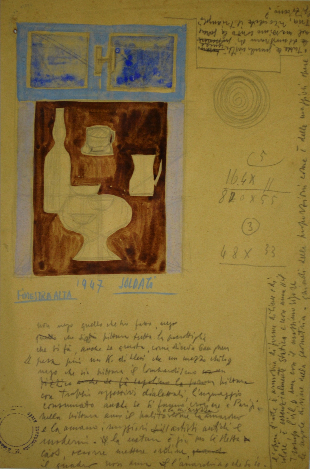 SOLDATI ATANASIO Parma 1896-1953 “Finestra alta” tecnica mista su carta cm 21x32 del 1947.