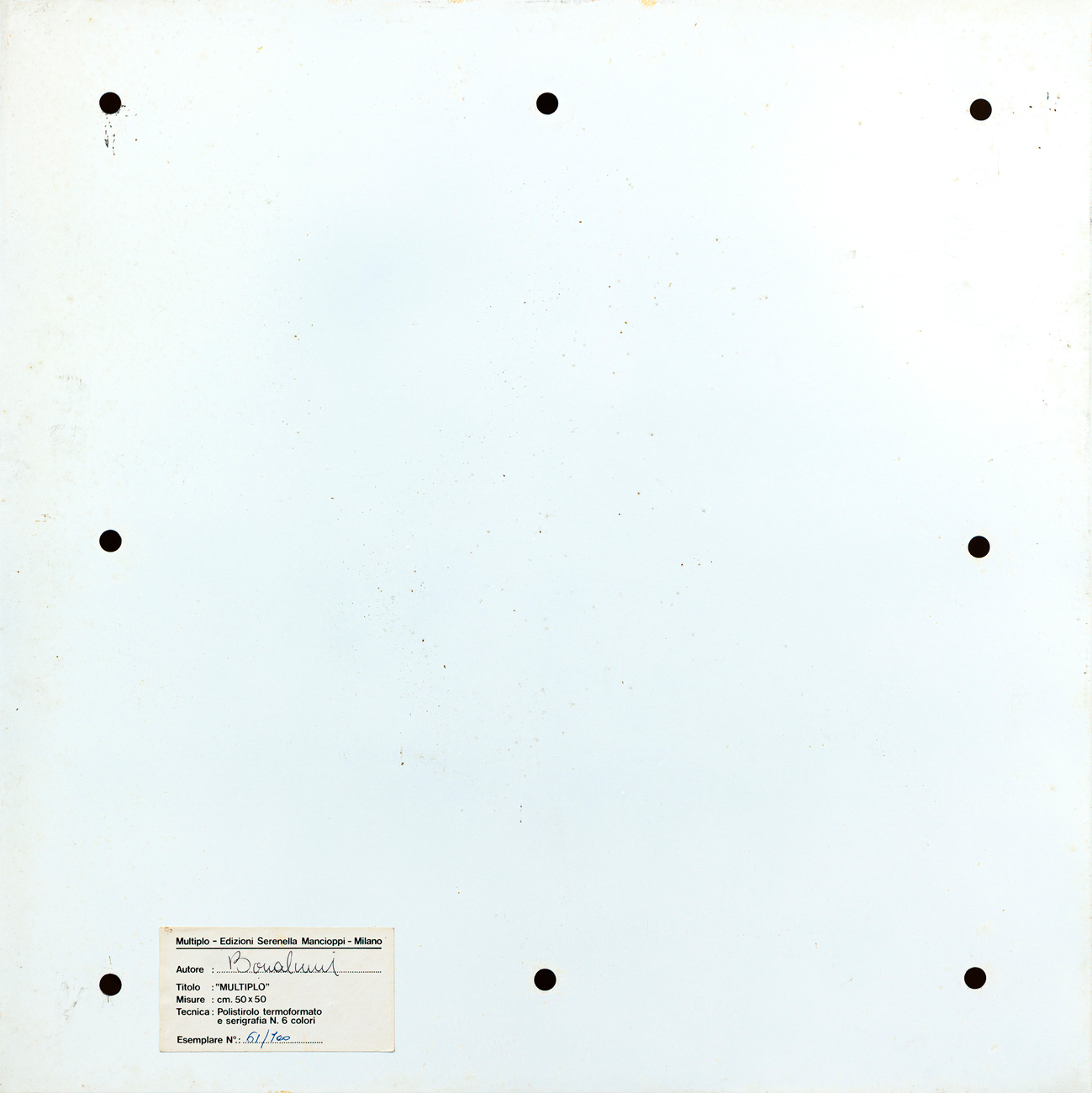 Etichetta al retro con firma a penna dell'Artista e numerazione (Esemplare 61/100)