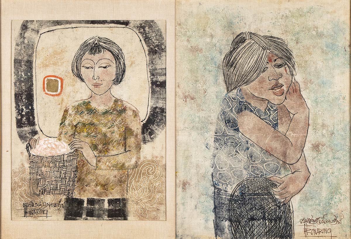 <br>DUE DIPINTI DI THANOMTUP RONARONG<br>(Thailandia, 1945-)