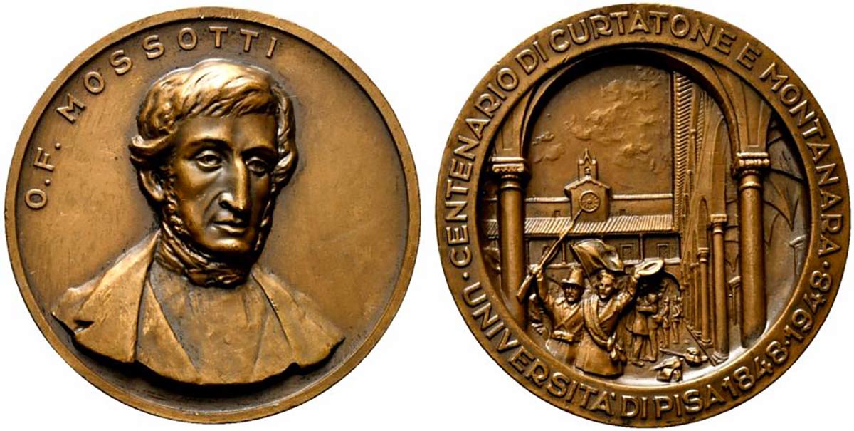 <br>PISA. Medaglia Centenario di Curtatone e Montanara. Università di Pisa 1848 - 1948. O.F.Mossotti. AE (99,1 g - 54 mm). FDC