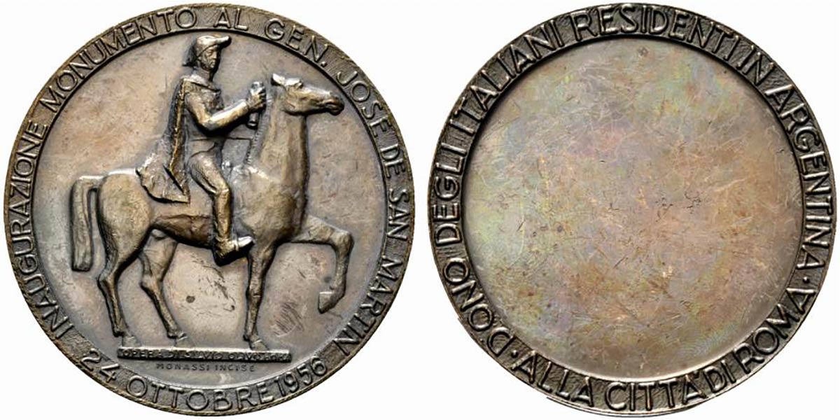 <br>ROMA. Medaglia 1956 Inaugurazione Monumento al Gen. Jose De san Martin. Dono degli Italiani residenti in Argentina alla città di Roma. AE (50,1 g - 50,9 mm) Opus Monassi. qFDC