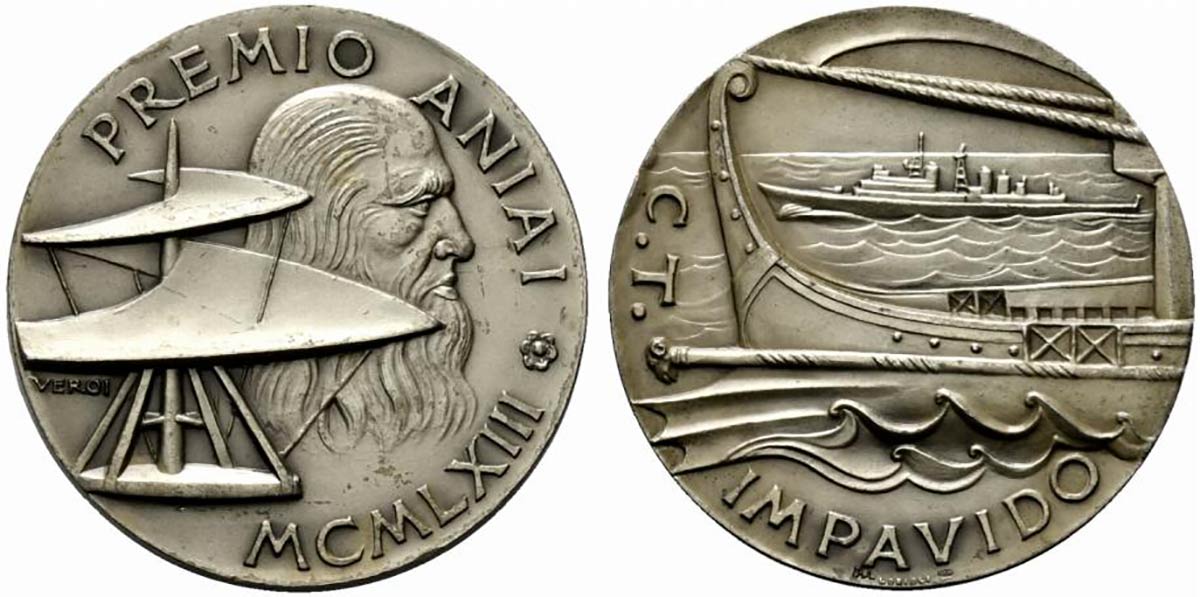 ANIAI. Associazione Nazionale Ingegneri e Architetti Italiani. Premio 1963 Nave CT IMPAVIDO. Opus Veroi Ag (48,63 g - 45,23 mm).
