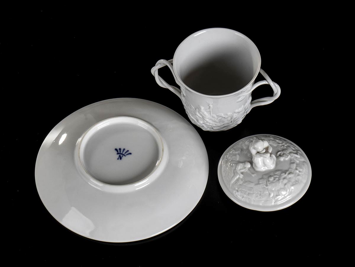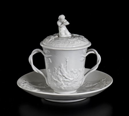 Parte di servizio composto da: 21 tazzine da punch con coperchio e due manici in porcellana bianca.
