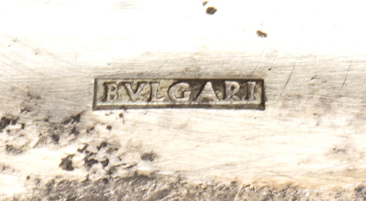 di forma esagonale. Punzonati "BVLGARI" e marchi Londra 1973-74. Altezza 18 cm, base 10,5 cm. Peso totale 1195 gr. Stato di conservazione: **** buono.