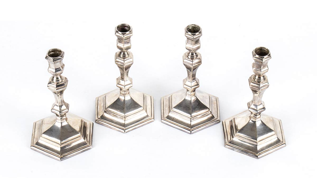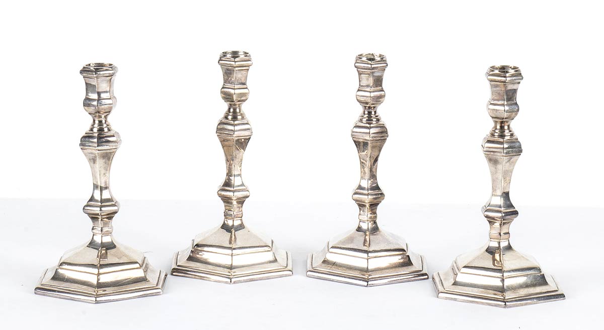 Quattro candelieri in argento 958/1000 - 1973, argentiere BVLGARI