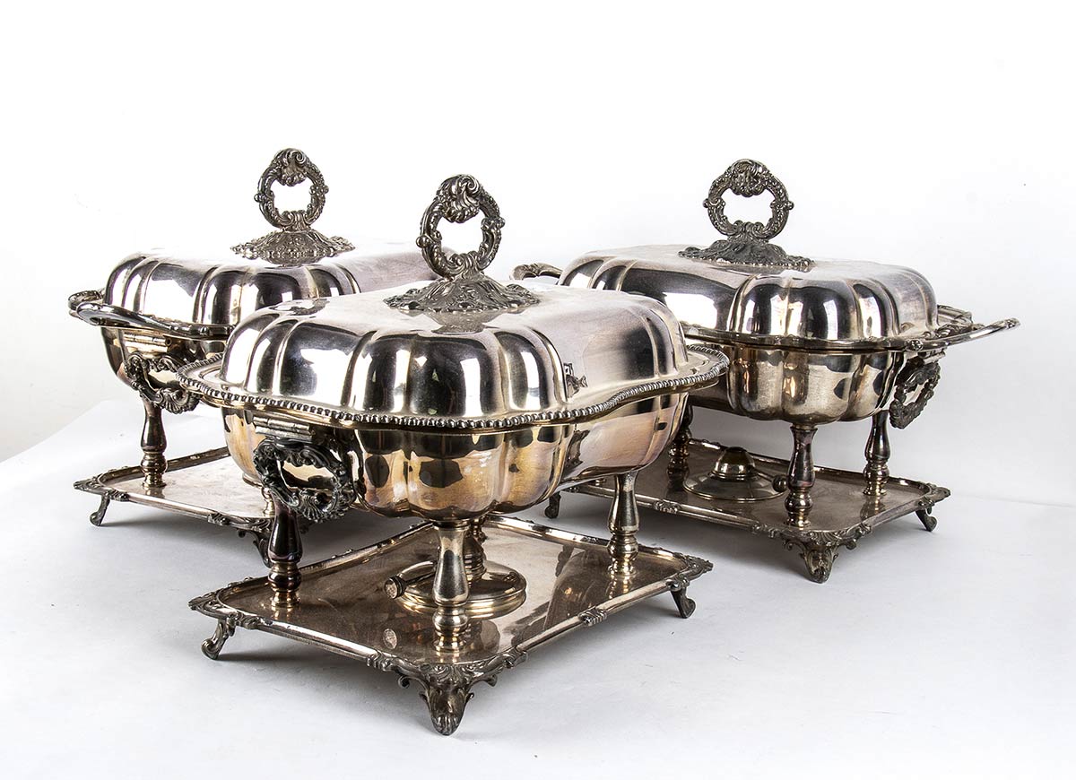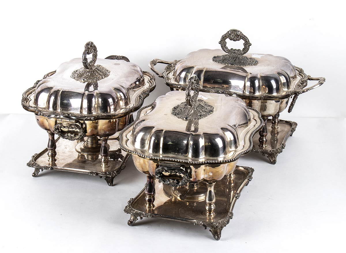 <br>Tre entrée dish in metallo argentato - XX secolo