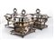 poggianti su vassoio retangolare con piedini fogliati. Dimensioni 29 x 41,5 x 26,5 cm; 30 x 32,5 x 26 cm; 29 x 41 x 26,5 cm. Stato di conservazione: **** buono.