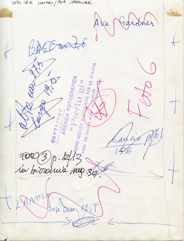 Ava Gardner and Walter Chiari by Praturlon. Print on single coated paper, Photographer's ink stamp and notes on back. Excellent conditions 1960 ca. 18 x 24