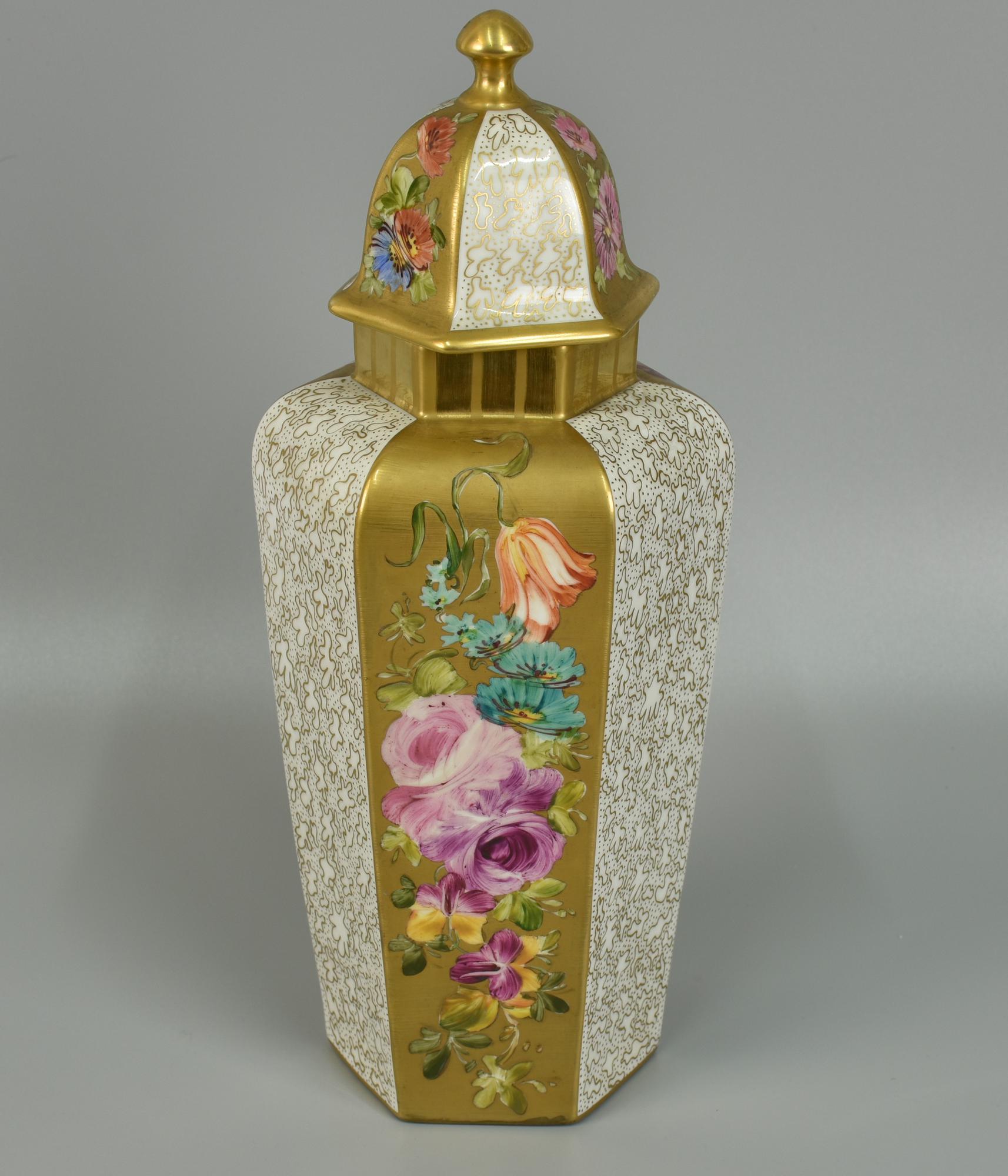 POTIQUE IN PORCELLANA con decorazioni floreali e fondo oro h 32 cm